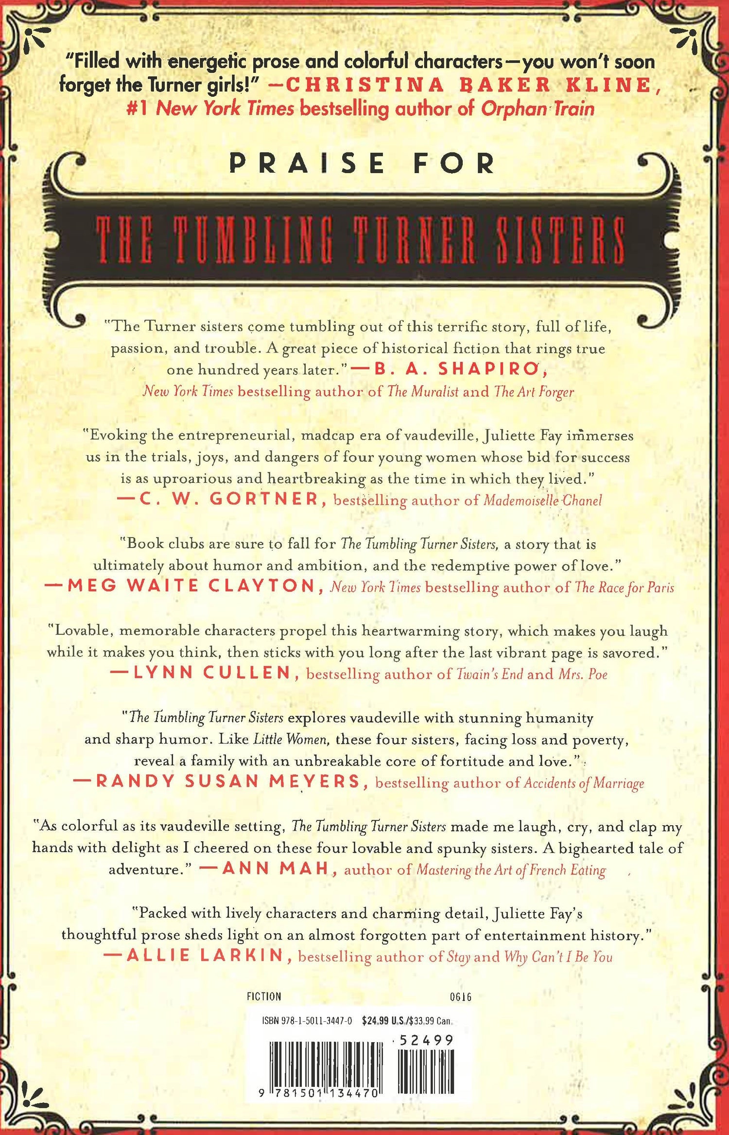 For fans of Orphan Train and Sara Gruen’s Water for Elephants, a compelling historical novel from “one of the best authors of women’s fiction” (Library Journal). Set against the turbulent backdrop of American Vaudeville, four sisters embark on an unexpected adventure - and a last-ditch effort to save their family.In 1919, the Turner sisters and their parents are barely scraping by. Their father is a low-paid boot-stitcher in Johnson City, New York, and the family is always one paycheck away from eviction. When their father’s hand is crushed and he can no longer work, their irrepressible mother decides that the vaudeville stage is their best - and only - chance for survival.Traveling by train from town to town, teenagers Gert, Winnie, and Kit, and recent widow Nell soon find a new kind of freedom in the company of performers who are as diverse as their acts. There is a seamier side to the business, however, and the young women face dangers and turns of fate they never could have anticipated. Heartwarming and surprising, The Tumbling Turner Sisters is ultimately a story of awakening - to unexpected possibilities, to love and heartbreak, and to the dawn of a new American era.