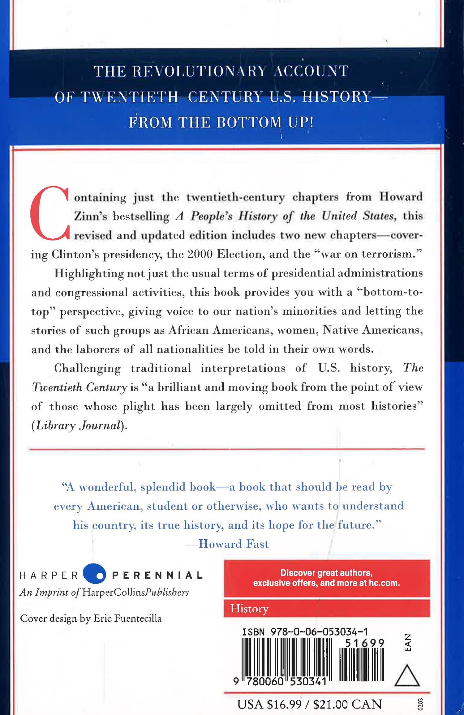 Containing just the twentieth-century chapters from Howard Zinn's bestselling A People's History of the United States, this revised and updated edition includes two new chapters -- covering Clinton's presidency, the 2000 Election, and the "war on terrorism." Highlighting not just the usual terms of presidential administrations and congressional activities, this book provides you with a "bottom-to-top" perspective, giving voice to our nation's minorities and letting the stories of such groups as African Americans, women, Native Americans, and the laborers of all nationalities be told in their own words. *This book may have remainder mark*
