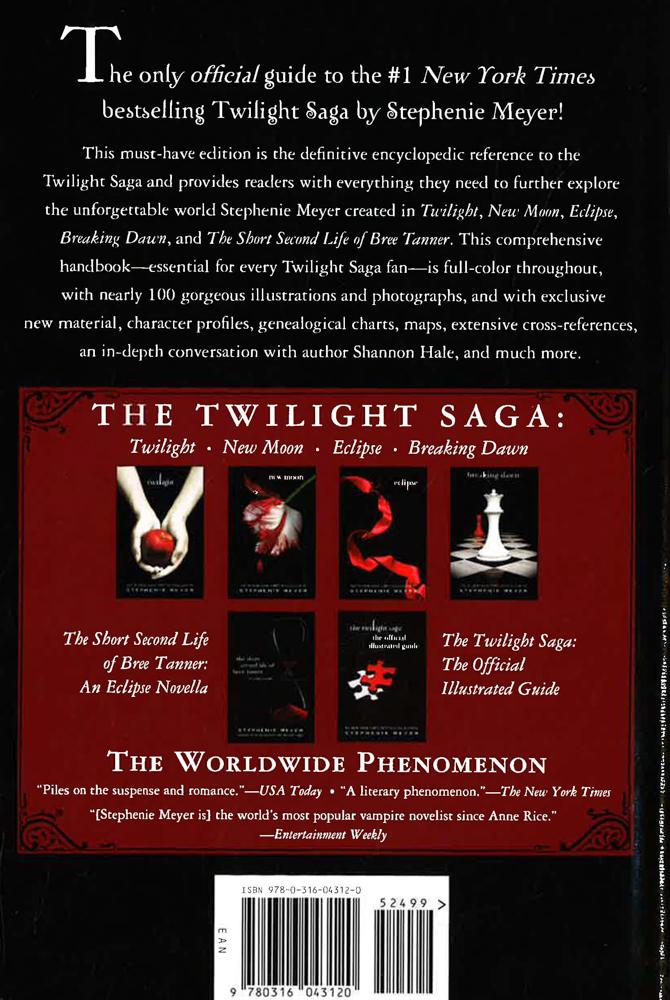 Fans of the #1 New York Times bestselling Twilight Saga will treasure this definitive official guide! This must-have hardcover edition-the only official guide-is the definitive encyclopedic reference to the Twilight Saga and provides readers with everything they need to further explore the unforgettable world Stephenie Meyer created in Twilight, New Moon, Eclipse, Breaking Dawn, and The Short Second Life of Bree Tanner. This comprehensive handbook-essential for every Twilight Saga fan-is full-color throughout with nearly 100 gorgeous illustrations and photographs and with exclusive new material, character profiles, genealogical charts, maps, extensive cross-references, and much more.