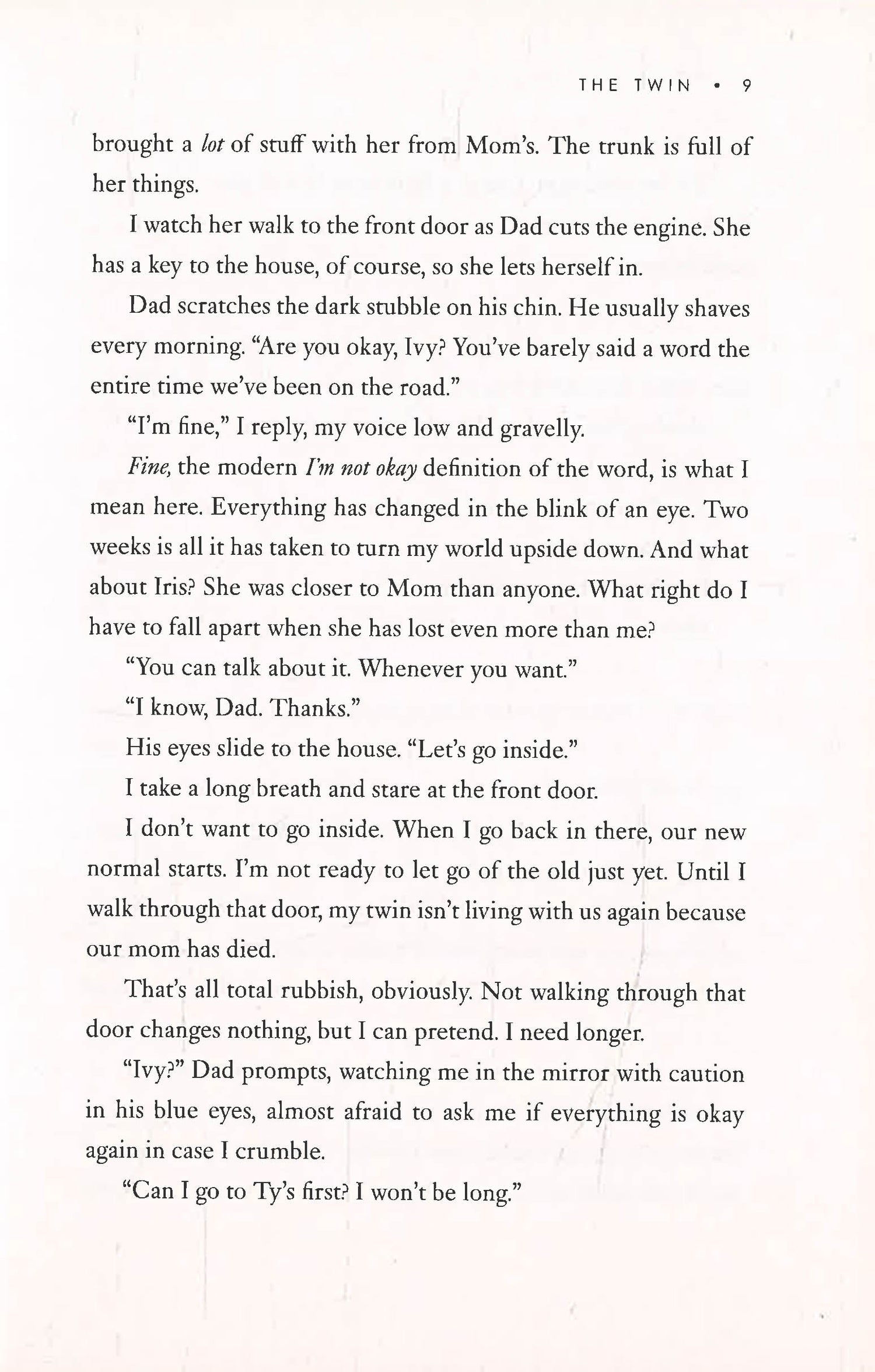 After a tragic accident takes their mom’s life, twins Ivy and Iris are reunited. Iris feels her life is over. Ivy promises her twin that she can share her life now. After all, they’re sisters. Twins. It’s a promise that Iris takes deadly seriously in The Twin.