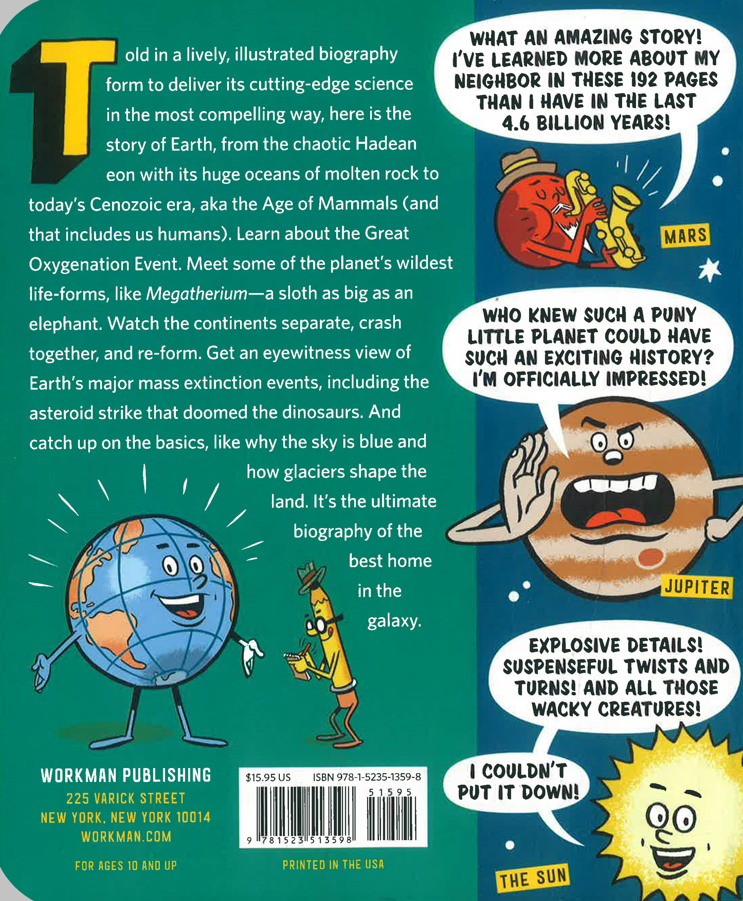 Told in a lively, illustrated biography form to deliver its cutting-edge science in the most compelling way, here is the story of Earth, from the chaotic Hadean eon with its huge oceans of molten rock to today’s Cenozoic era, aka the Age of Mammals (and that includes us humans). Learn about the Great Oxygenation Event. Meet some of the planet’s wildest life-forms, like Megatherium—a sloth as big as an elephant. Watch the continents separate, crash together, and reform. Get an eyewitness view of Earth’s major mass extinction events, including the asteroid strike that doomed the dinosaurs. And catch up on the basics, like why the sky is blue and how glaciers shape the land. It’s the ultimate biography of the best home in the galaxy. Fully illustrated and packed with facts!