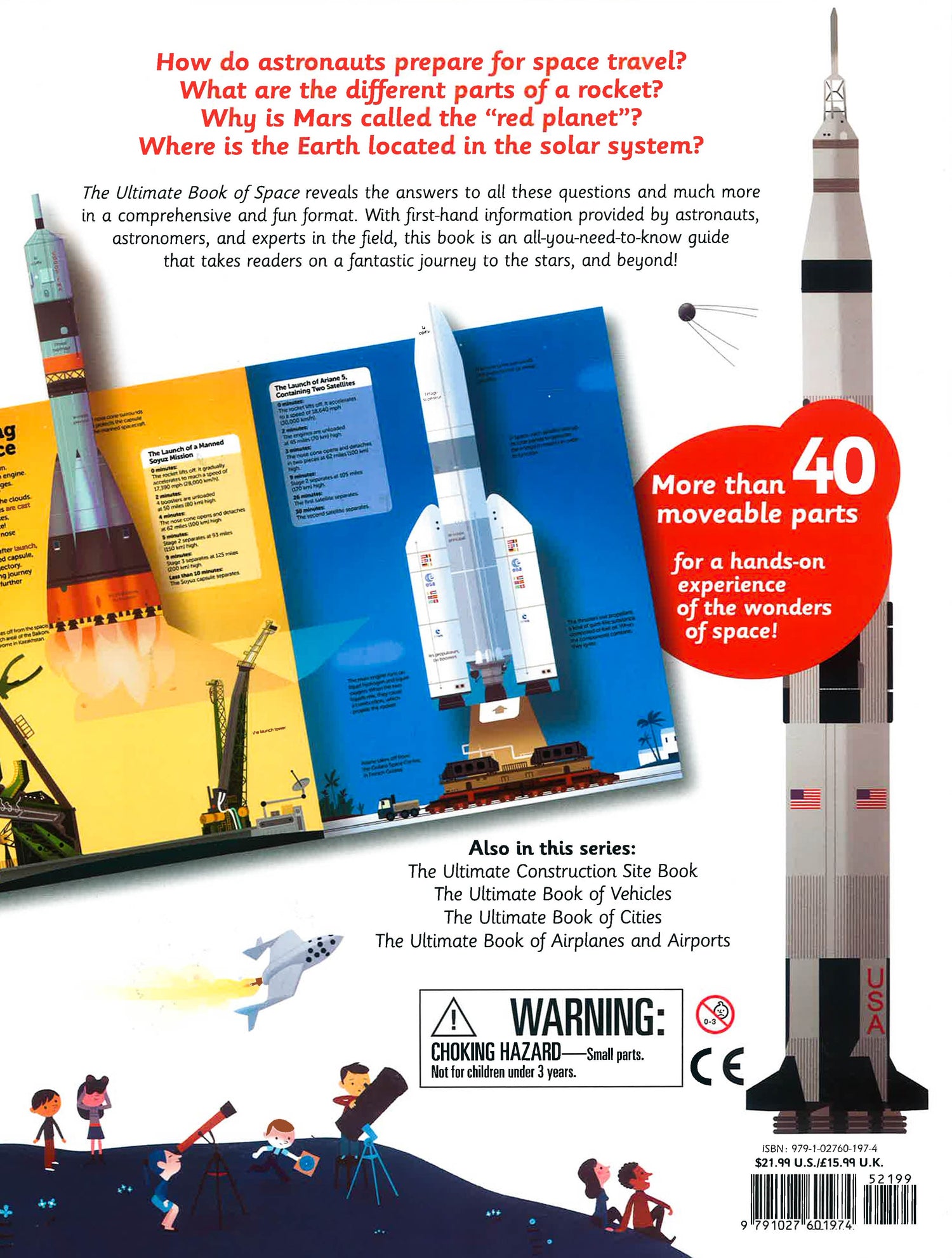 With all the features that made The Ultimate Construction Site Book a bestseller, this oversized volume offers a fact- filled and action-packed look at the amazing universe of outer space. Bursting with 40 flaps, pop-ups, pull tabs, and movable parts, The Ultimate Book of Space provides a richly illustrated, hands-on exploration of space travel, the Earth's place in our galaxy, the solar system, and so much more! Sure to encourage curious young readers to venture deeper into space, this is a must-have book for any budding scientist's library.