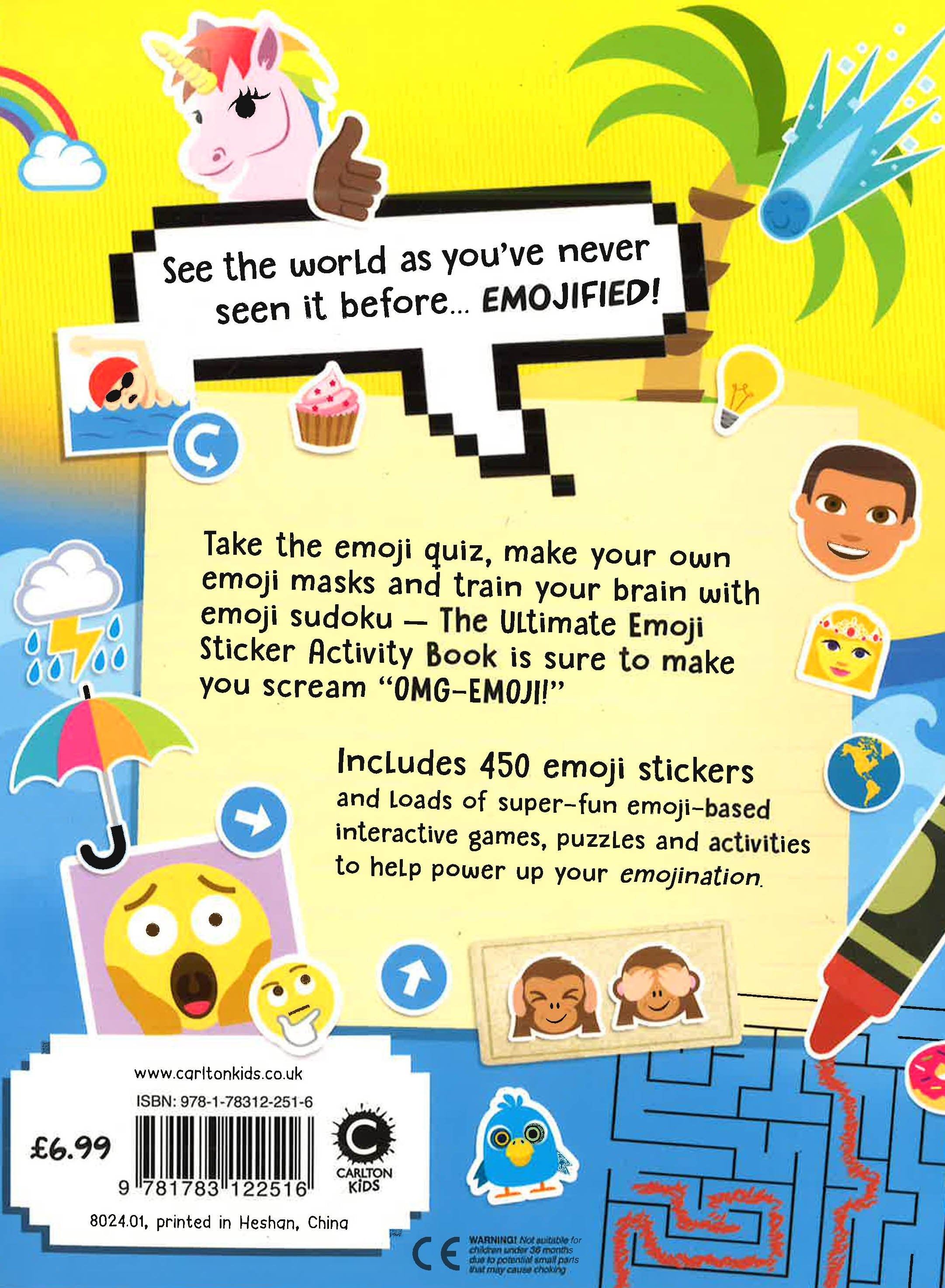 The Ultimate Emoji Sticker Activity Book is Carlton Kids' first exploration of the increasing popular universe of emojis. Fun for whole family to enjoy, this 72-page creative activity title has the potential to start a new series of emoji-based titles. With The Ultimate Emoji Sticker Activity Book you can now see the world as you've never seen it before...emojified! The perfect gift for any emoji-mad member in your family which, last time we looked up from our smartphones, was everyone. Packed to the rafters with over 50 creative and educational activity games - from emoji history to design your own emoji, and from cut-out emoji masks to emoji sudoko - this book is sure to make you scream "OMG-EMOJI!"