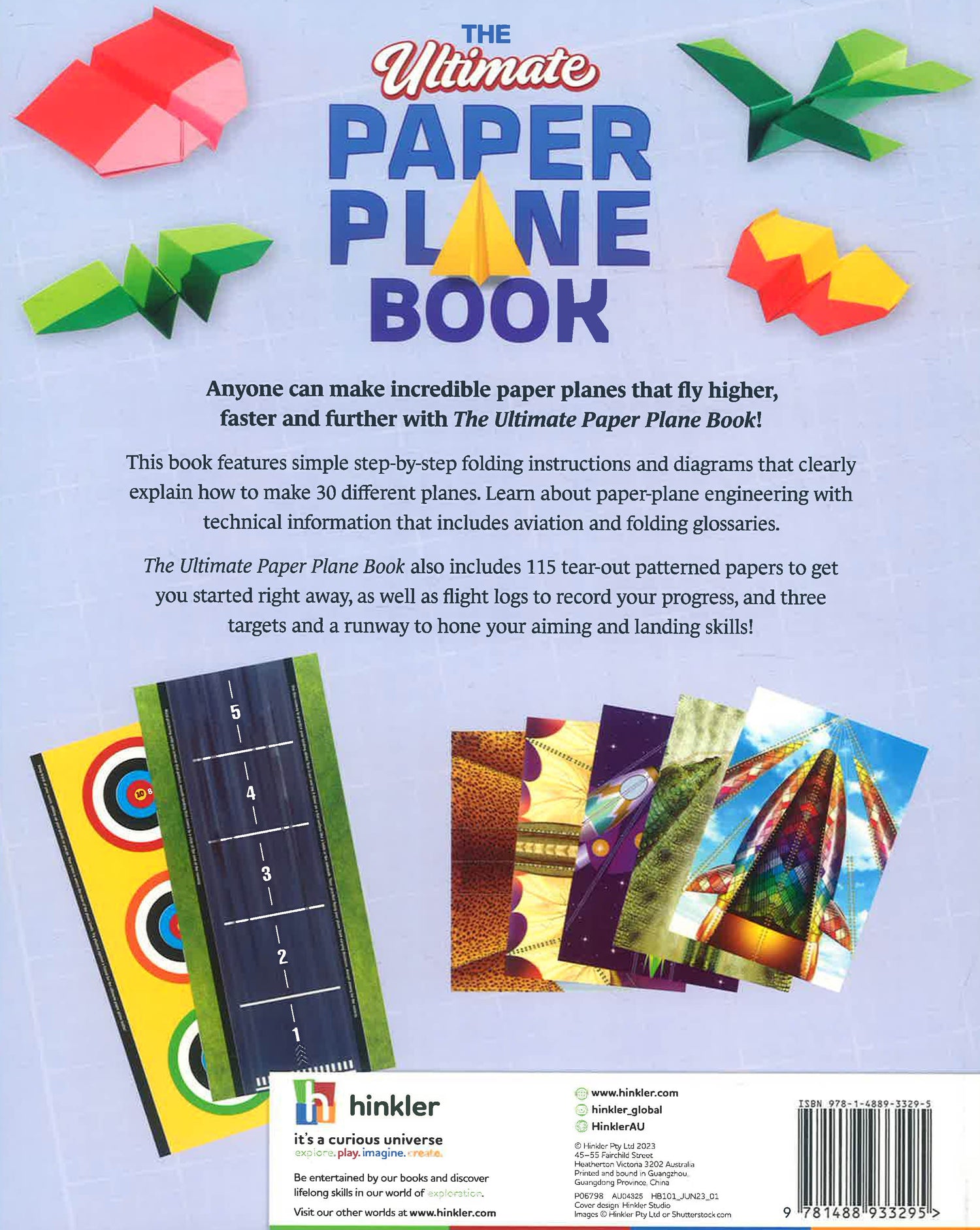 This book features simple step-by-step folding instructions and diagrams that clearly explain how to make 30 different planes. Learn about paper-plane engineering with technical information that includes aviation and folding glossaries. The Ultimate Paper Plane Book also includes 115 tear out patterned papers to get you started right away, as well as flight logs to record your progress, and three targets and a runway to hone your aiming and landing skills!
