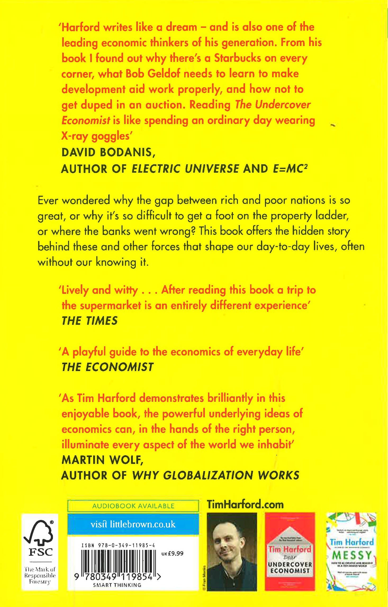 Who makes most money from the demand for cappuccinos early in the morning at Waterloo Station? Why is it impossible to get a foot on the property ladder? How does the Mafia make money from laundries when street gangs pushing drugs don't? Who really benefits from immigration? How can China, in just fifty years, go from the world's worst famine to one of the greatest economic revolutions of all time, lifting a million people out of poverty a month? Looking at familiar situations in unfamiliar ways, THE UNDERCOVER ECONOMIST is a fresh explanation of the fundamental principles of the modern economy, illuminated by examples from the streets of London to the booming skyscrapers of Shanghai to the sleepy canals of Bruges. Leaving behind textbook jargon and equations, Tim Harford will reveal the games of signals and negotiations, contests of strength and battles of wit that drive not only the economy at large but the everyday choices we make. *This book may have minor shelfwear.