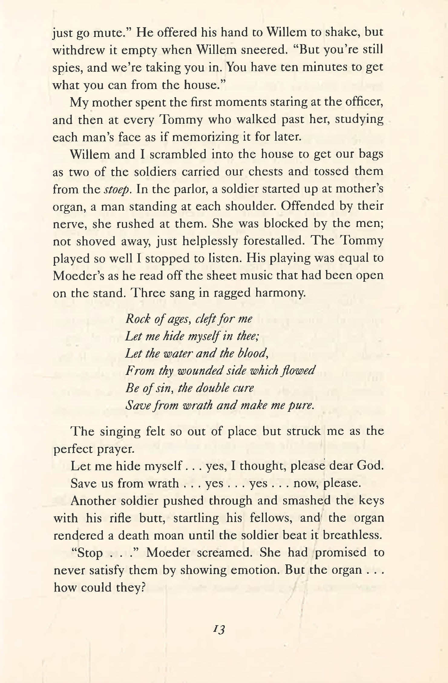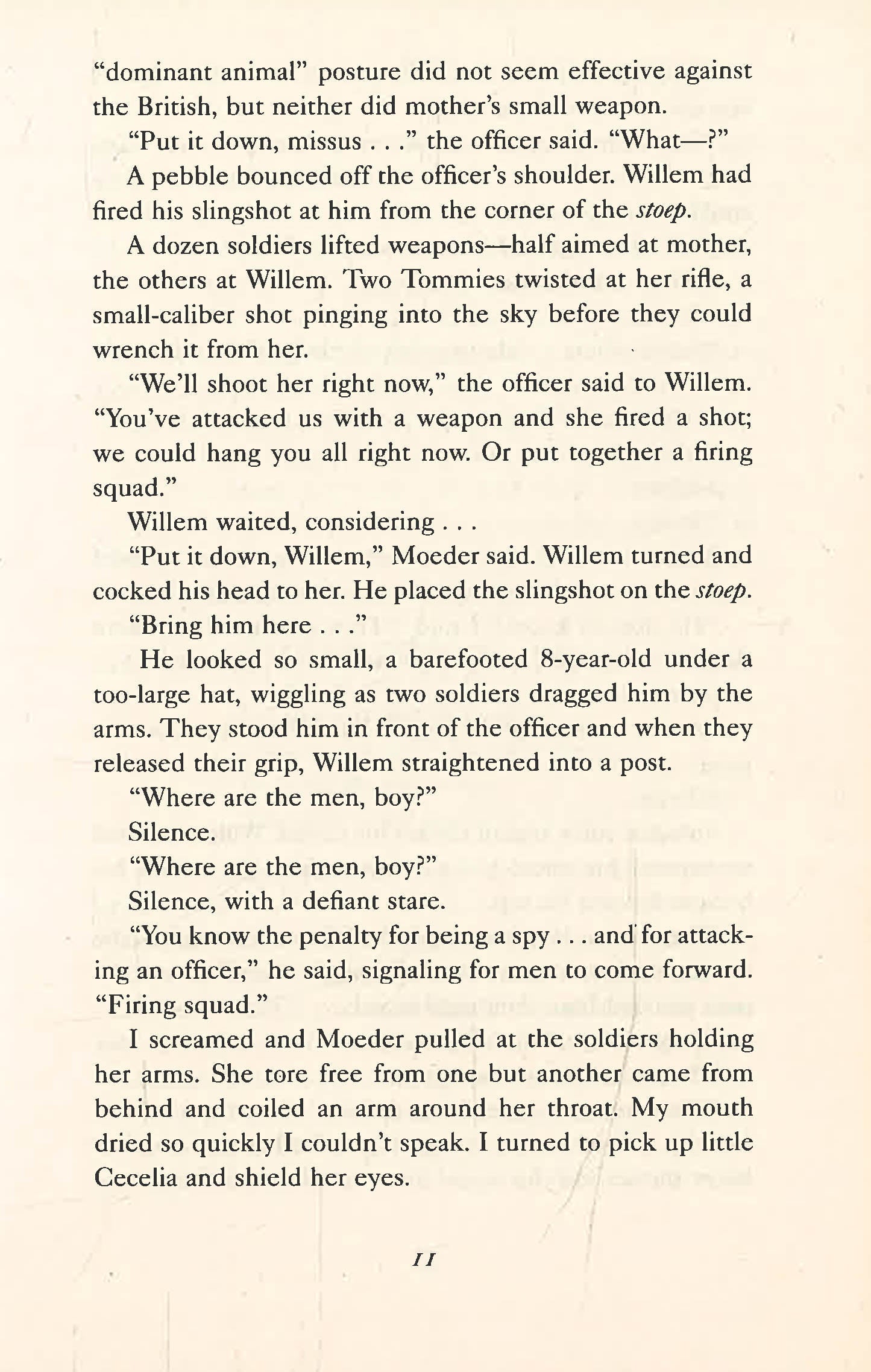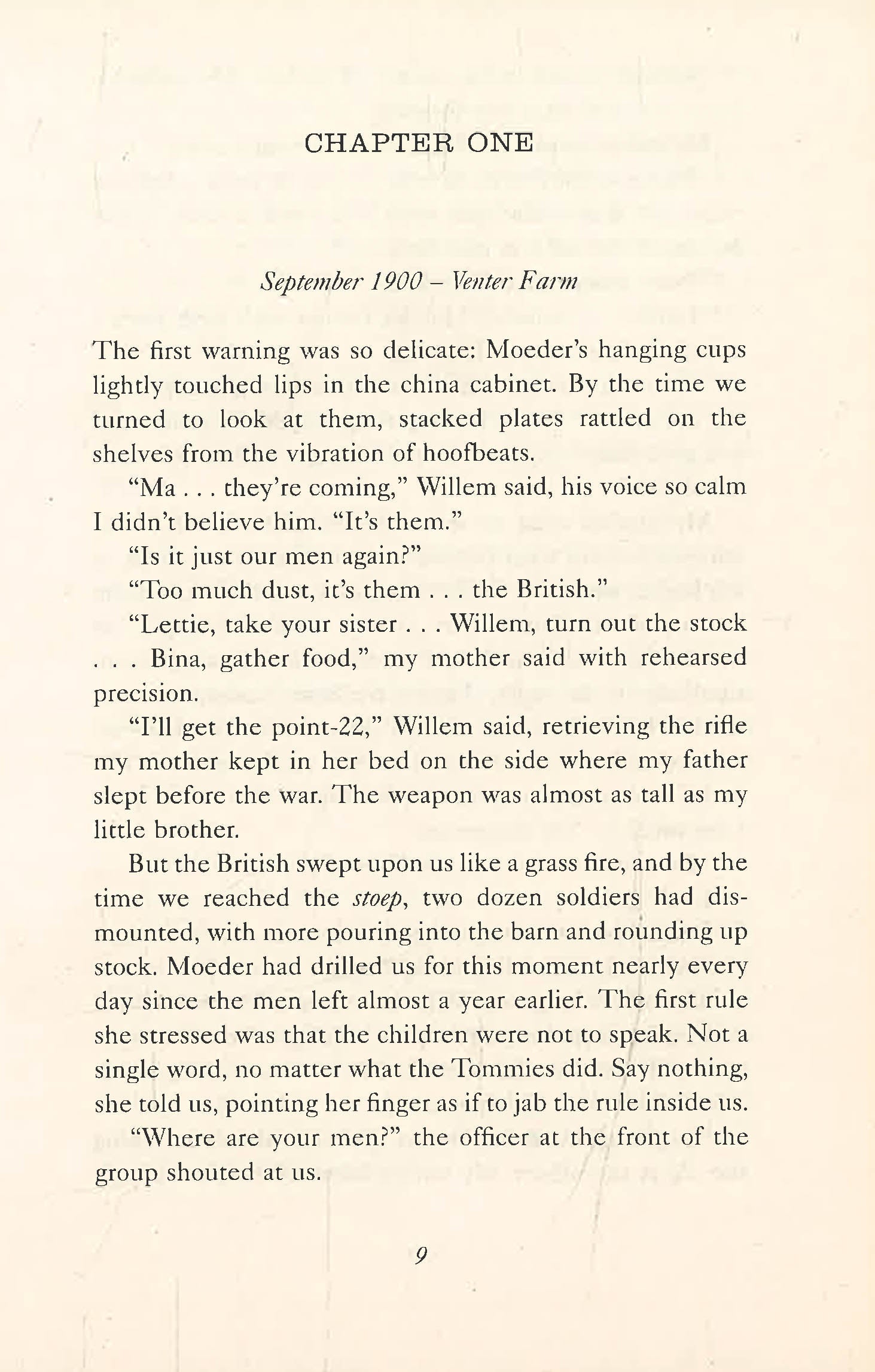 In a crowded tent with her mother and siblings, Aletta finds ways to cope with the confinement, privation and loss, but searches for the rarest of comforts - a bit of adolescent normalcy, perhaps even the spark of forbidden romance. Her weapon of choice in this personal battle: a young girl's powerful sense of hope.