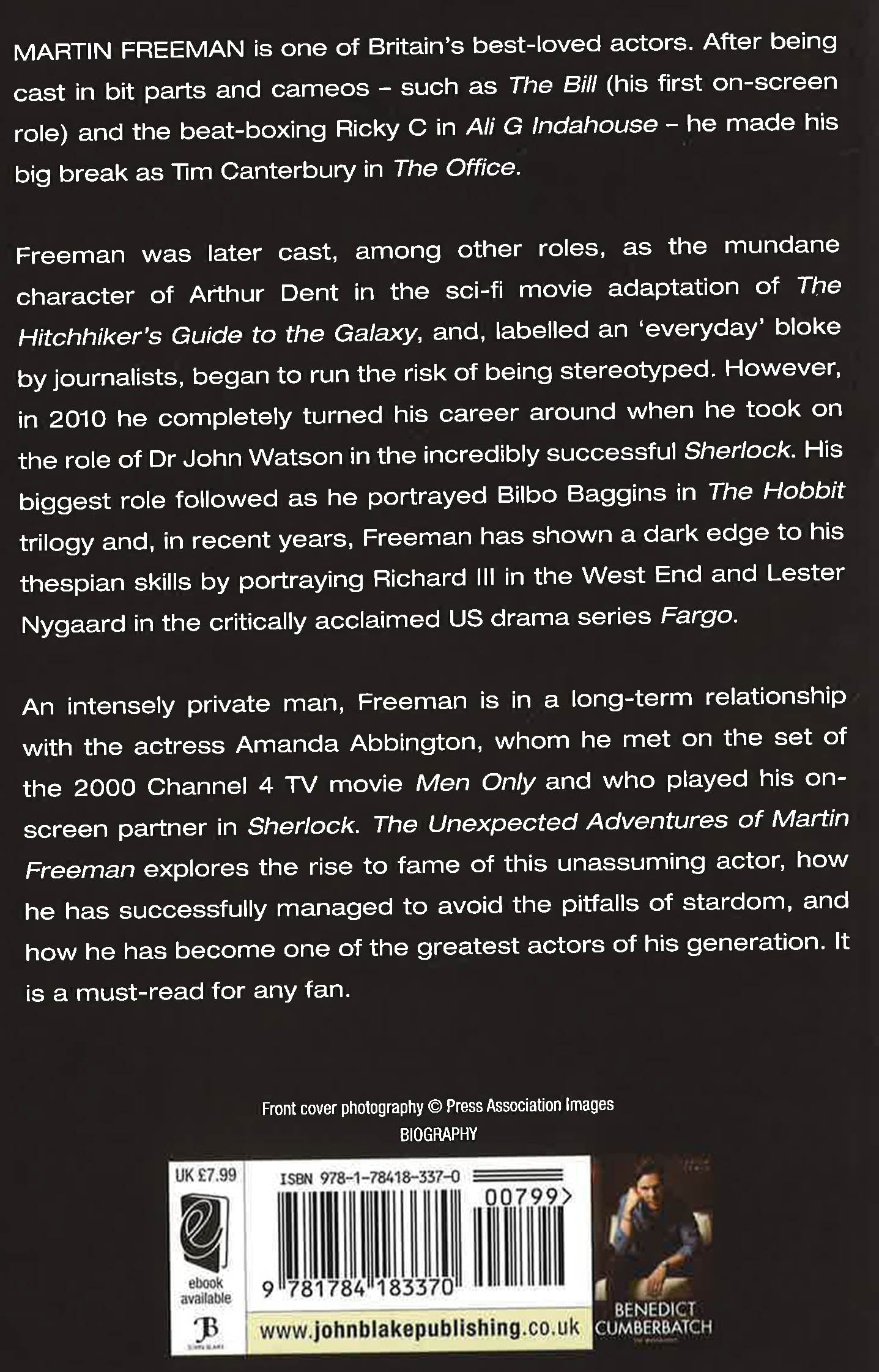 Martin Freeman is one of Britain's best-loved actors. After being cast in bit parts and cameos - such as The Bill (his first onscreen role) and the beat-boxing Ricky C in Ali G Indahouse - he made his big break as Tim Canterbury in The Office. Freeman was later cast, among other roles, as the mundane character of Arthur Dent in the sci-fi movie adaption of The Hitchhiker's Guide to the Galaxy, and, labelled an 'everyday' bloke by journalists, began to run the risk of being stereotyped. However, in 2010 he completely turned his career around when he took on the role of Dr John Watson in the incredibly successful Sherlock. His biggest role followed as he portrayed Bilbo Baggins in The Hobbit trilogy and, in recent years, Freeman has shown a dark edge to his thespian skills by portraying Richard III in the West End and Lester Nygaard in the critically acclaimed US drama series Fargo. An intensely private man, Freeman is in a long-term relationship with the actress Amanda Abbington, whom he met on the set of the 2000 Channel 4 TV movie Men Only and who played his on-screen partner in Sherlock. The Unexpected Adventures of Martin Freeman explores the rise to fame of this unassuming actor, how he has successfully managed to avoid the pitfalls of stardom, and how he has become one of the greatest actors of his generation. It is a must-read for any fan.