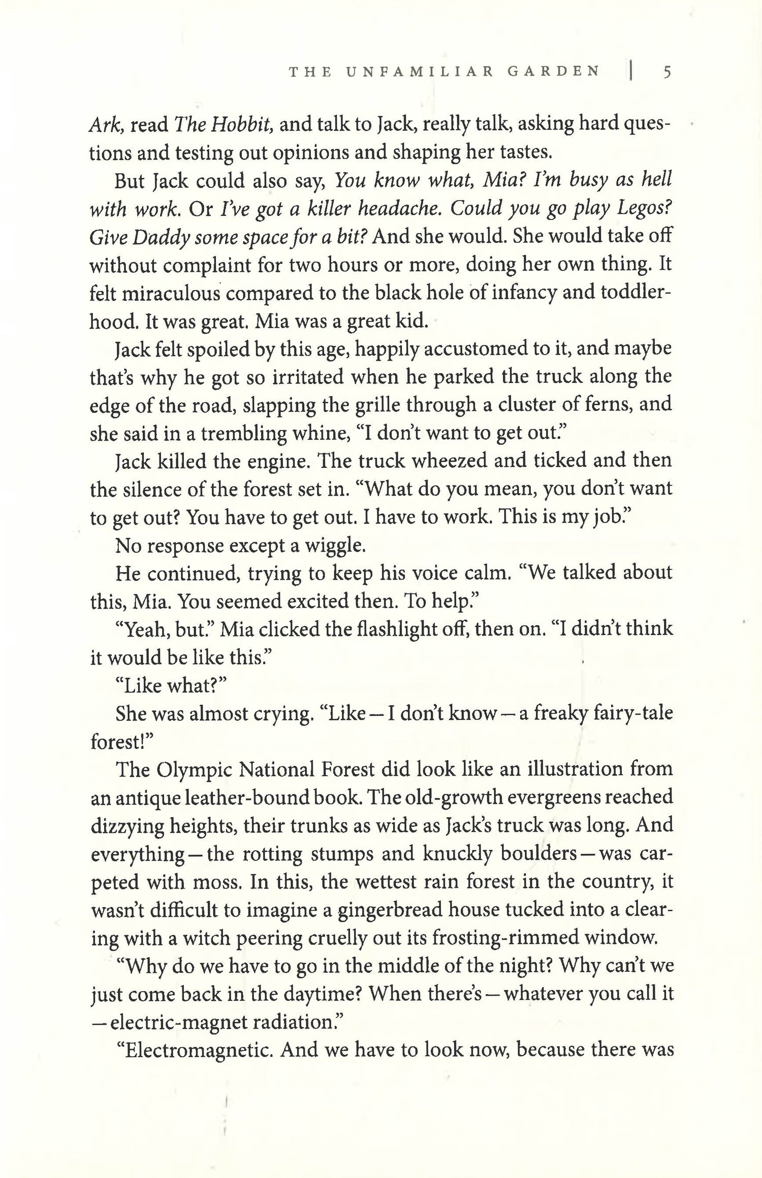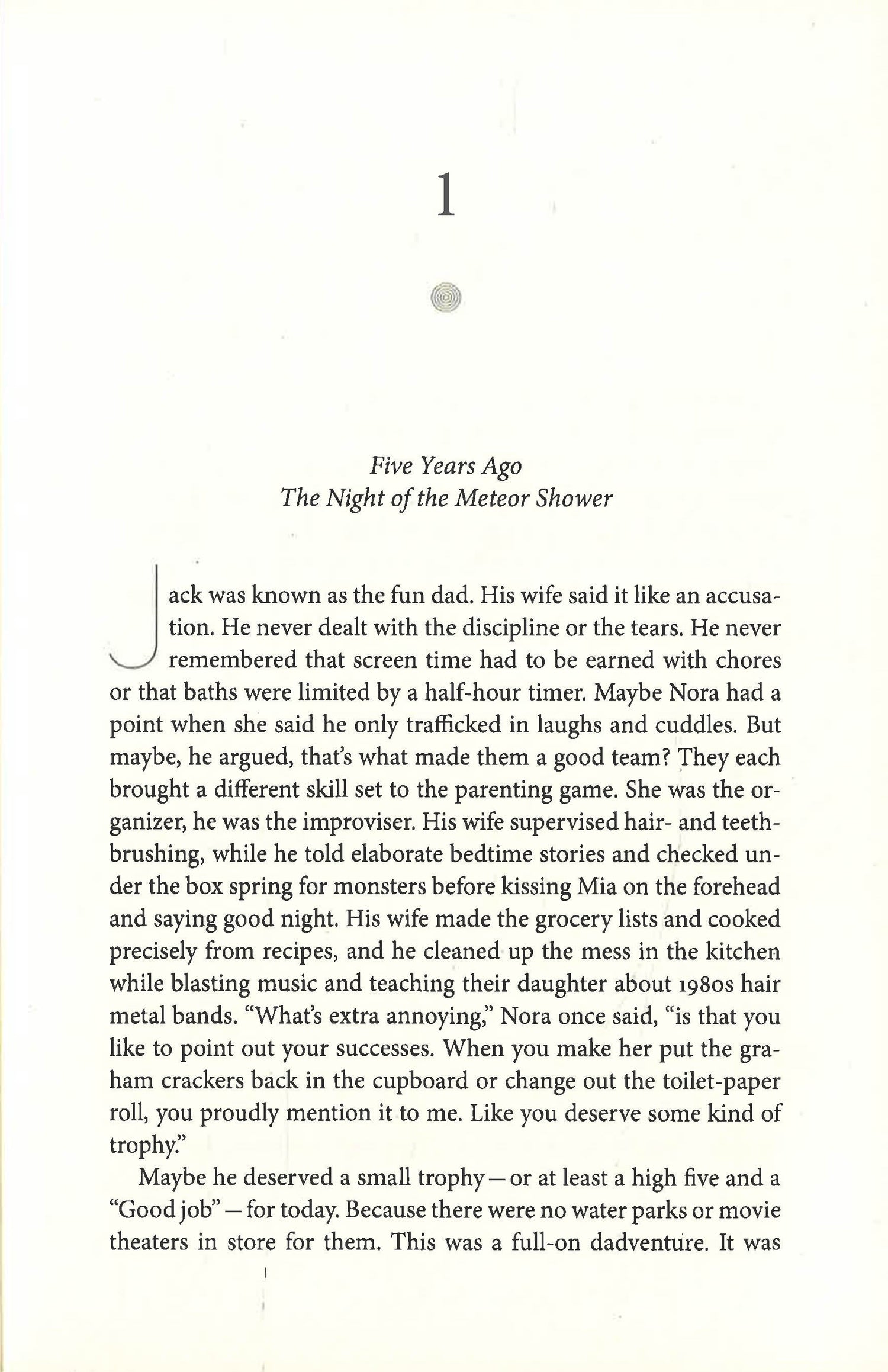 Five years after the disappearance of his daughter, Jack has fallen. Once an accomplished professor of botany, he's now a shell of a man who has all but withdrawn from life. Nora, his ex-wife, has thrown herself into her investigative work. Separately, they have each bandaged over the hole Mia left behind.