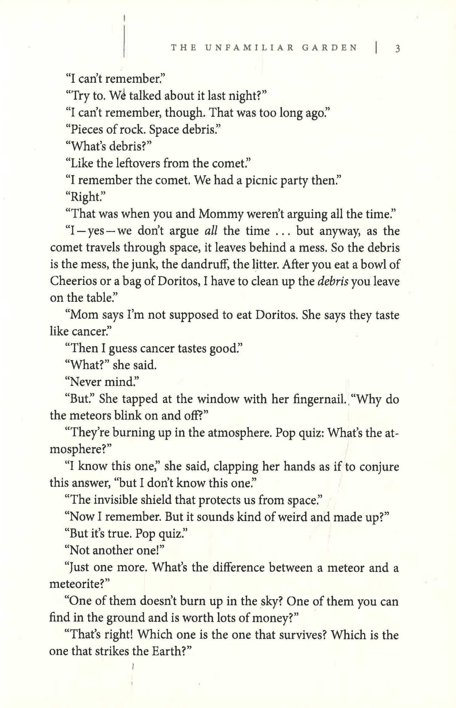 It began with a comet. They called it Cain, a wandering star that passed by Earth, illuminating the night with a swampy green light and twinning the sky by day with two suns. A year later, Earth spun through the debris field the comet left behind. Suddenly, hundreds of thousands of meteors plummeted into the atmosphere, destroying swaths of electrical grids, leaving shores of beaches filled with deceased sea life, and setting acres of land ablaze. It was then, they say, that the sky fell. It was then that Jack lost Mia.