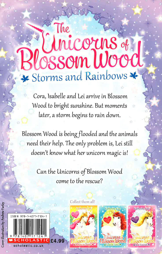 Isabelle, Cora and Lei find themselves whisked away to a magical land where they're no longer girls but unicorns! Join them on their adventures in Blossom Wood as they make new animal friends and learn to use their special unicorn magic! A gorgeous animal series set in the beautiful Blossom Wood - where children turn into magical creatures. Cousins Cora, Isabelle and Lei arrive in Blossom Wood to bright sunshine - and as soon as they enter, they turn into unicorns! But moments later, a storm begins to rain down. Blossom Wood is being flooded and the animals need their help. The only problem is, Lei still doesn't know what her unicorn magic is! Can the Unicorns of Blossom Wood come to the rescue? with magical line illustrations throughout BLOSSOM WOOD BOOKS Owls: The Birthday Party Owls: An Enchanted Wedding Owls: Lost and Found Owls: A Magical Beginning Owls: Save the Day Owls: To the Resue Unicorns: Believe In Magic Unicorns: Best Friends Unicorns: Festival Time Unicorns: Storms and Rainbows