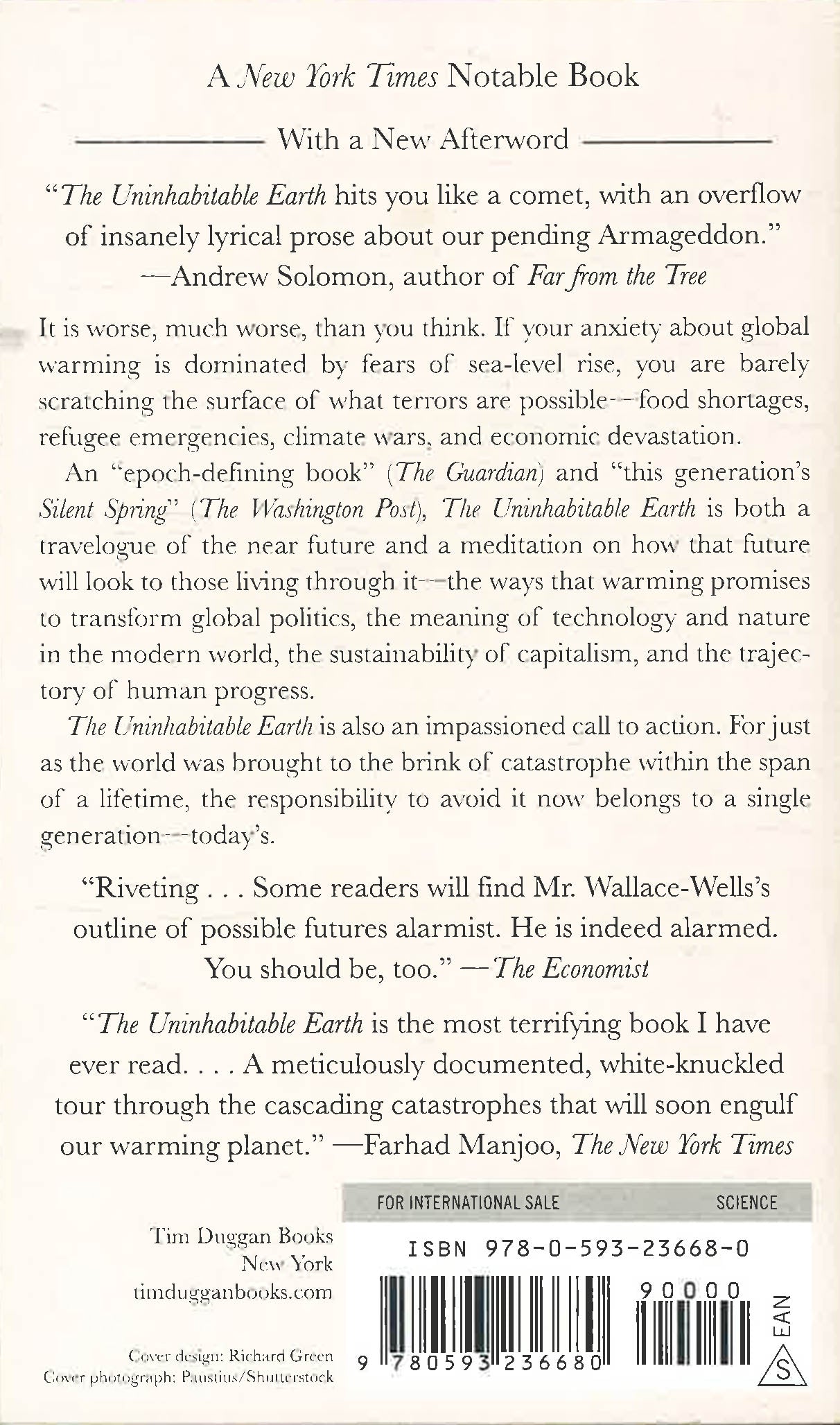 "The Uninhabitable Earth, which has become a best seller, taps into the underlying emotion of the day: fear. . . . I encourage people to read this book."--Alan Weisman, The New York Review of Books