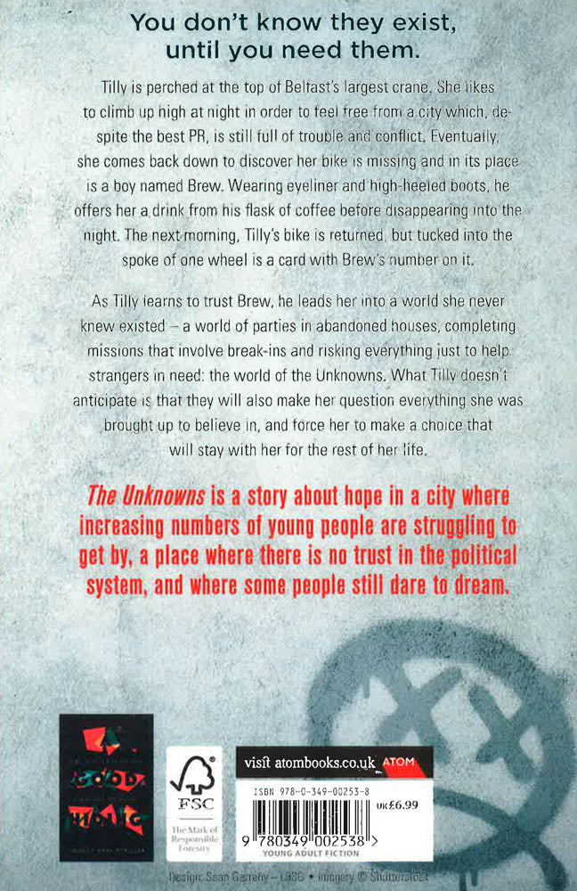 As Tilly learns to trust Brew, he leads her into a world she never knew existed - a world of parties in abandoned houses, completing missions that involve break-ins, and risking everything just to help strangers in need; the world of The Unknowns. What Tilly doesn't anticipate is that they will also make her question everything she was brought up to believe in, and force her to make a choice that will stay with her for the rest of her life.