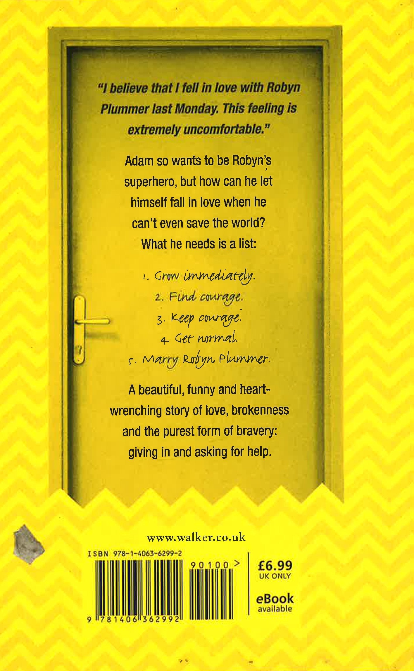 A beautiful, funny and heart-wrenching story of love, brokenness and the purest form of bravery: giving in and asking for help. Understated and heart-warming, this is a story of love and determination that shows how everyone can be a superhero in their own way. When Adam meets Robyn he is drawn to her almost before he can take a breath. He's determined to protect and defend her, to play Batman to her Robin, whatever the cost. But when you're fourteen and the everyday problems of dealing with divorced parents and step-siblings are supplemented by the challenges of OCD, it's hard to imagine yourself falling in love. This beautiful story will appeal to readers of John Green.