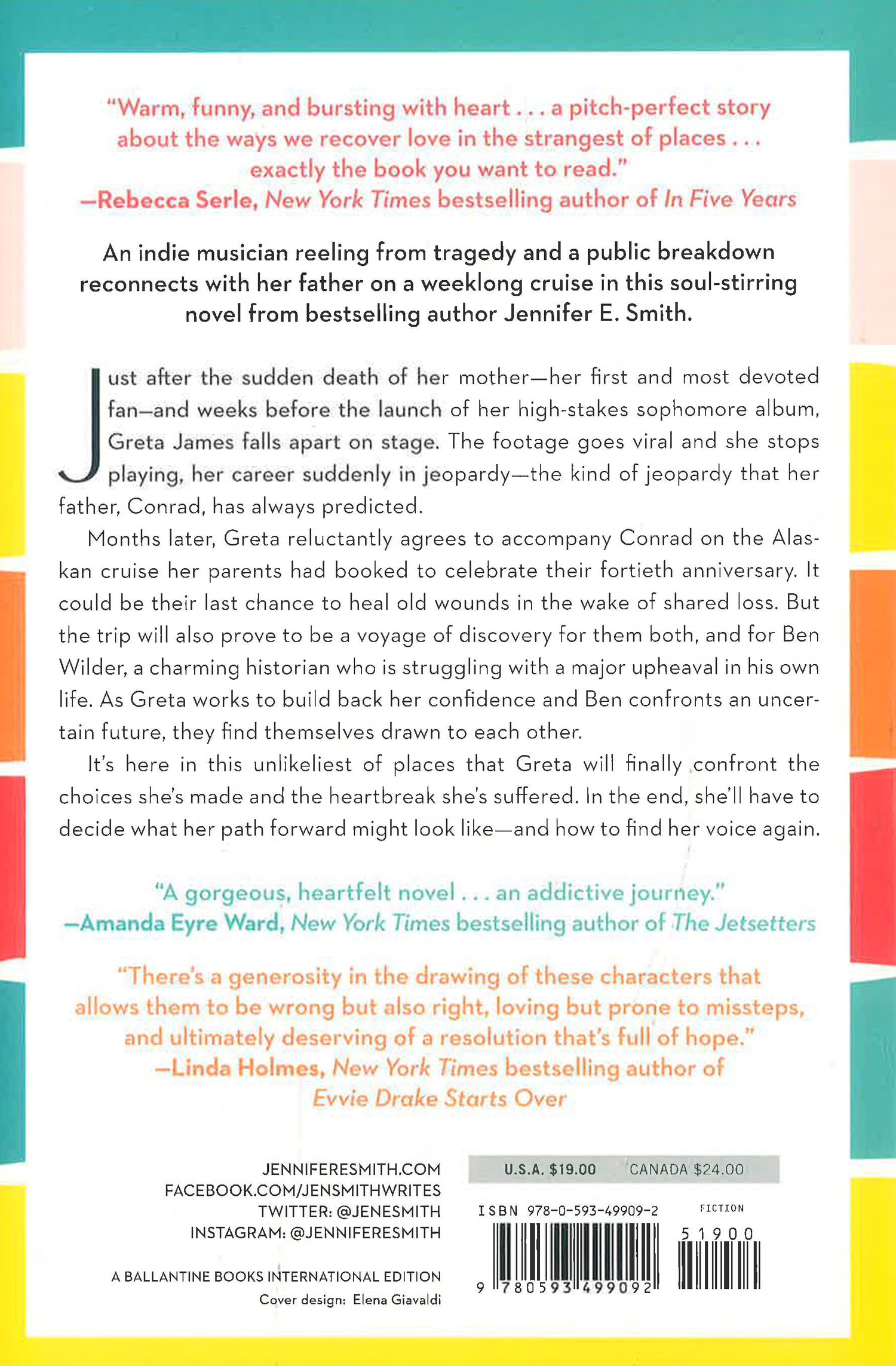 Months later, Greta—still heartbroken and very much adrift—reluctantly agrees to accompany Conrad on the Alaskan cruise her parents had booked to celebrate their fortieth anniversary. It could be their last chance to heal old wounds in the wake of shared loss. But the trip will also prove to be a voyage of discovery for them both, and for Ben Wilder, a charming historian, onboard to lecture about The Call of the Wild, who is struggling with a major upheaval in his own life. As Greta works to build back her confidence and Ben confronts an uncertain future, they find themselves drawn to and relying on each other.