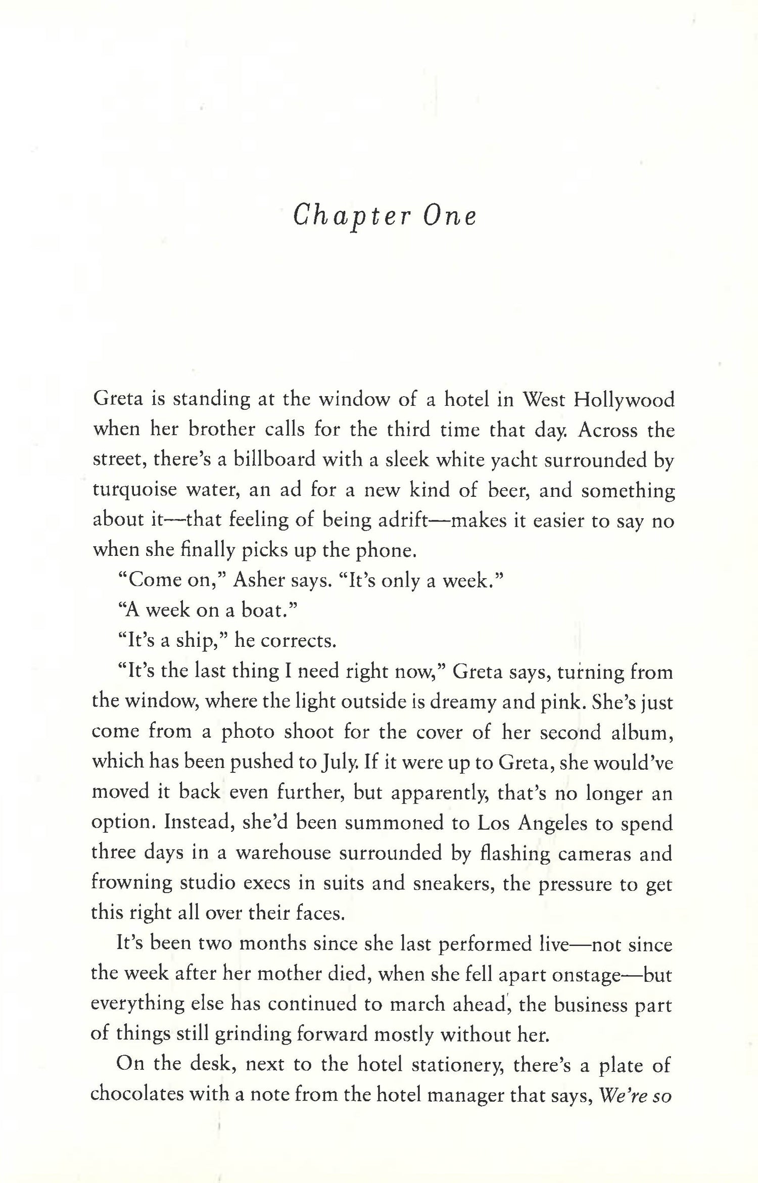 'Warm, funny, and bursting with heart' Rebecca Serle 'Beautiful, moving, hopeful' Emily Stone Greta James is adrift. Literally. Just after the sudden death of her mother - her most devoted fan - and weeks before the launch of her high-stakes second album, Greta James falls apart on stage. The footage quickly goes viral and she stops playing. Greta's career is suddenly in jeopardy - the kind of jeopardy her father, Conrad, has always warned her about. Months later, Greta - still heartbroken and very much adrift - reluctantly agrees to accompany Conrad on the Alaskan cruise her parents had booked to celebrate their fortieth anniversary. It could be their last chance to heal old wounds in the wake of shared loss. But the trip will also prove to be a voyage of discovery for them both, and for Ben Wilder, a charming historian who is struggling with a major upheaval in his own life. In this unlikeliest of places - at sea and far from the packed venues where she usually plays - Greta must finally confront the heartbreak she's suffered, the family hurts that run deep, and how to find her voice again. 'Gorgeous, heartfelt' Amanda Eyre Ward 'Thoughtful and tender and true' Janelle Brown 'Filled with music, passion, and love of all kinds' Jill Santopolo 'A total delight!' Christine Pride 'Full of hope . . . vibrant' Linda Holmes
