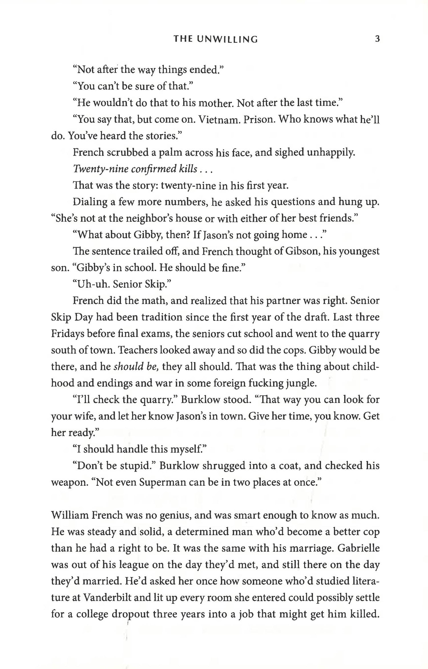 Gibby's older brothers have already been to war. One died there. The other came back misunderstood and hard, a decorated killer now freshly released from a three-year stint in prison. Jason won't speak of the war or of his time behind bars, but he wants a relationship with the younger brother he hasn't known for years. Determined to make that connection, he coaxes Gibby into a day at the lake: long hours of sunshine and whisky and older women. But the day turns ugly when the four encounter a prison transfer bus on a stretch of empty road. Beautiful but drunk, one of the women taunts the prisoners, leading to a riot on the bus. The woman finds it funny in the moment, but is savagely murdered soon after. Given his violent history, suspicion turns first to Jason; but when the second woman is kidnapped, the police suspect Gibby, too. Determined to prove Jason innocent, Gibby must avoid the cops and dive deep into his brother's hidden life, a dark world of heroin, guns and outlaw motorcycle gangs. What he discovers there is a truth more bleak than he could have imagined: not just the identity of the killer and the reasons for Tyra's murder, but the forces that shaped his brother in Vietnam, the reason he was framed, and why the most dangerous man alive wants him back in prison. This is crime fiction at its most raw, an exploration of family and the past, of prison and war and the indelible marks they leave.