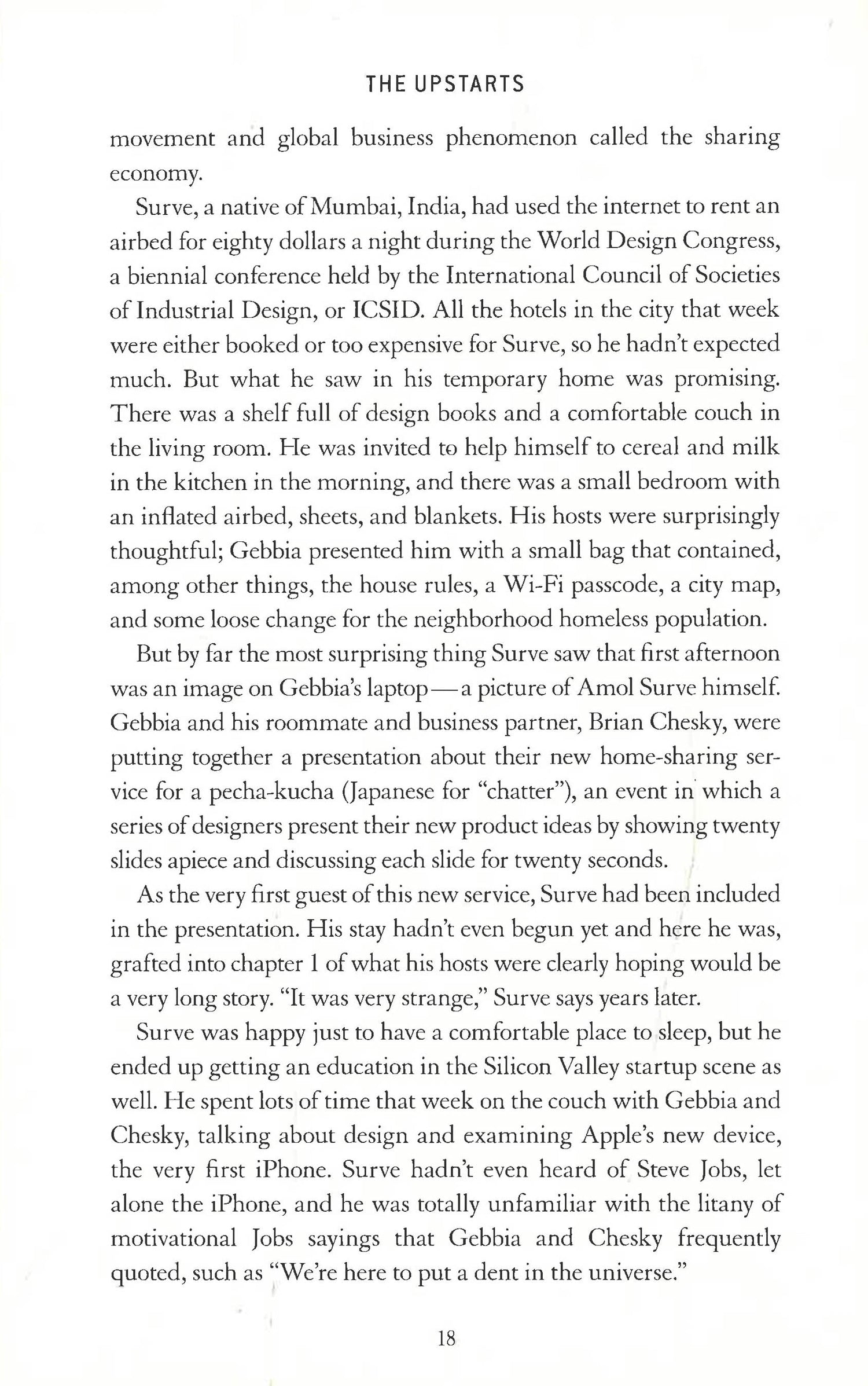 A look deep inside the new Silicon Valley, from the New York Times bestselling author of The Everything Store. Ten years ago, the idea of getting into a stranger's car, or a walking into a stranger's home, would have seemed bizarre and dangerous, but today it's as common as ordering a book online. Uber and Airbnb have ushered in a new era: redefining neighborhoods, challenging the way governments regulate business, and changing the way we travel. In the spirit of iconic Silicon Valley renegades like Steve Jobs and Bill Gates, another generation of entrepreneurs is using technology to upend convention and disrupt entire industries. These are the upstarts, idiosyncratic founders with limitless drive and an abundance of self-confidence. Led by such visionaries as Travis Kalanick of Uber and Brian Chesky of Airbnb, they are rewriting the rules of business and often sidestepping serious ethical and legal obstacles in the process. The Upstarts is the definitive story of two new titans of business and a dawning age of tenacity, conflict and wealth. In Brad Stone's riveting account of the most radical companies of the new Silicon Valley, we discover how it all happened and what it took to change the world.