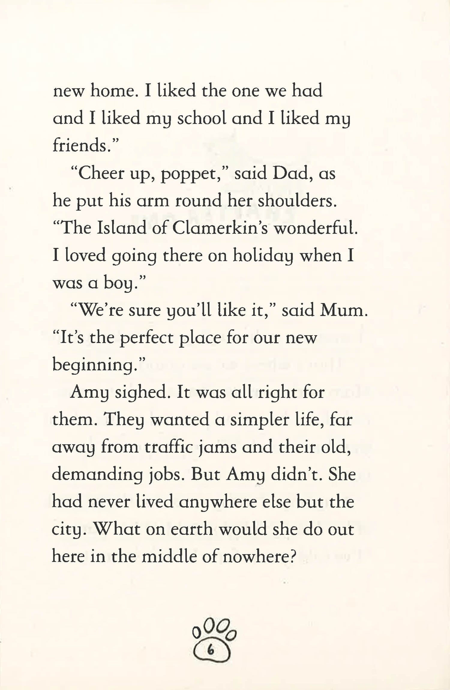 Welcome to the world of Amy Wild, where dogs tell their secrets, cats perform rescue missions, and an entire island is squeaking and squawking with animal magic! When Amy Wild goes to live at her great-aunt's tea room on the island of Clamerkin, Granty, her great aunt, welcomes her with a very special necklace - a necklace that gives Amy the power to talk to animals. Granty's terrier, Hilton, immediately introduces Amy to the Clan - a group of animals whose job is to protect the island and keep it a happy place to live. But the Clan cats are suspicious about their prospective new member, and Amy must prove herself to win their trust. Ever wondered what your pet is really thinking? Animal lovers everywhere will be instantly enchanted by this Dr. Doolittle for a new generation.