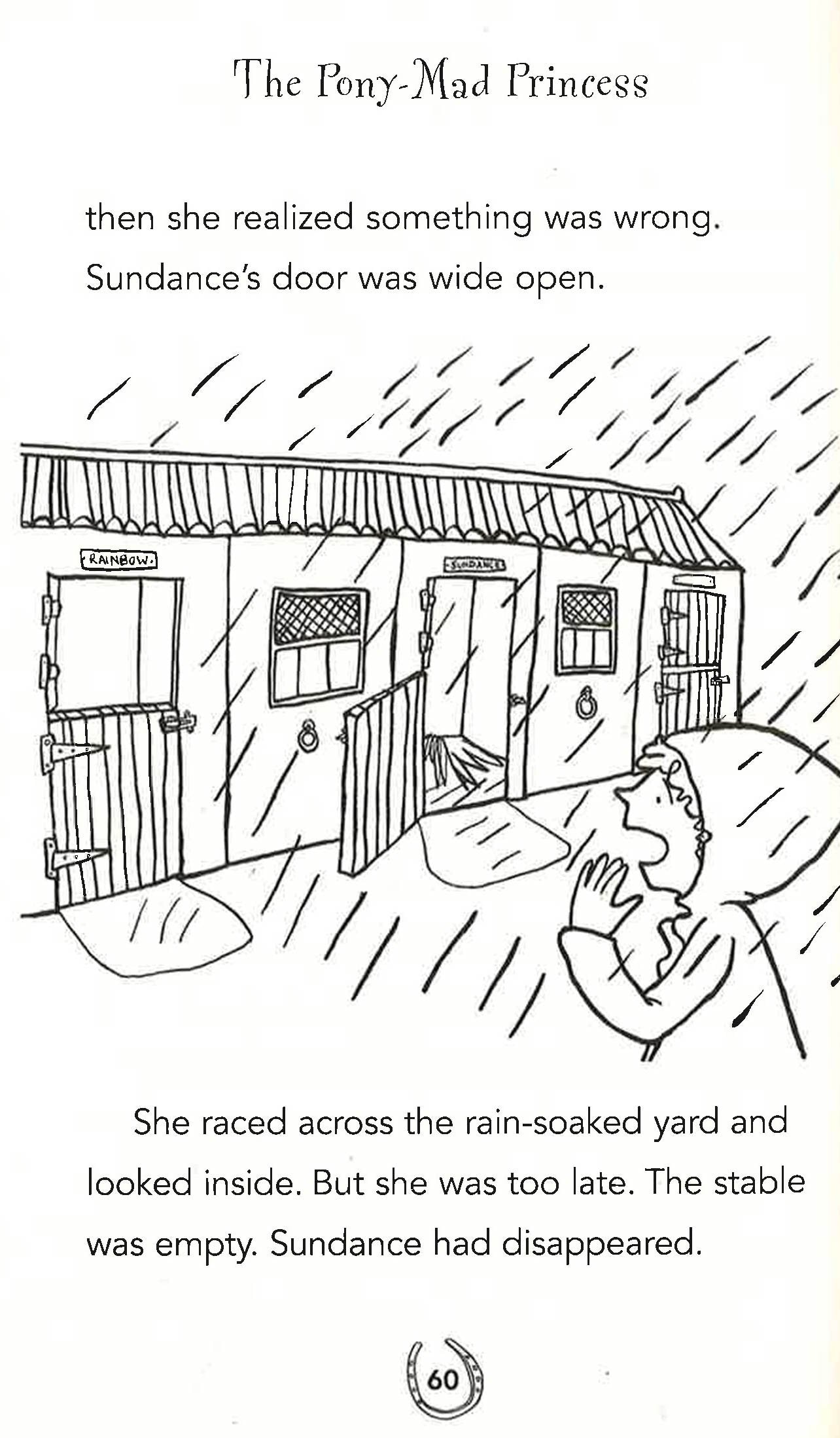 All Princess Ellie ever thinks about is riding and helping out at the royal stables. When Sundance, one of her beloved ponies, goes missing Ellie's sure that the mysterious girl in the woods must have something to do with it. She must solve the mystery and rescue Sundance before it's too late. Full-filled adventures and friendly black and white illustrations full of authentic pony information and sparkly princessy detail.