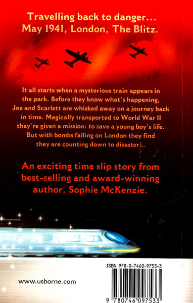 When Scarlett, Joe and their dog stumble upon a ghostly train visible only to them, they find themselves travelling back in time to WWII on a heroic mission. Young Alfie was killed during the Blitz trying to rescue his Nan, who survived. Now it's up to Scarlett and Joe to save the boy - and they have just one hour to complete their mission.It all starts when a mysterious train appears in the park. Before they know what's happening, Joe and Scarlett are whisked away on a journey back in time. Magically transported to World War II, they're given a mission: to save a young boy's life. But with bombs falling on London, they find they are counting down to disaster... Travelling back to danger...May 1941, London, The Blitz. An exciting time slip story from best-selling and award-winning author, Sophie McKenzie.