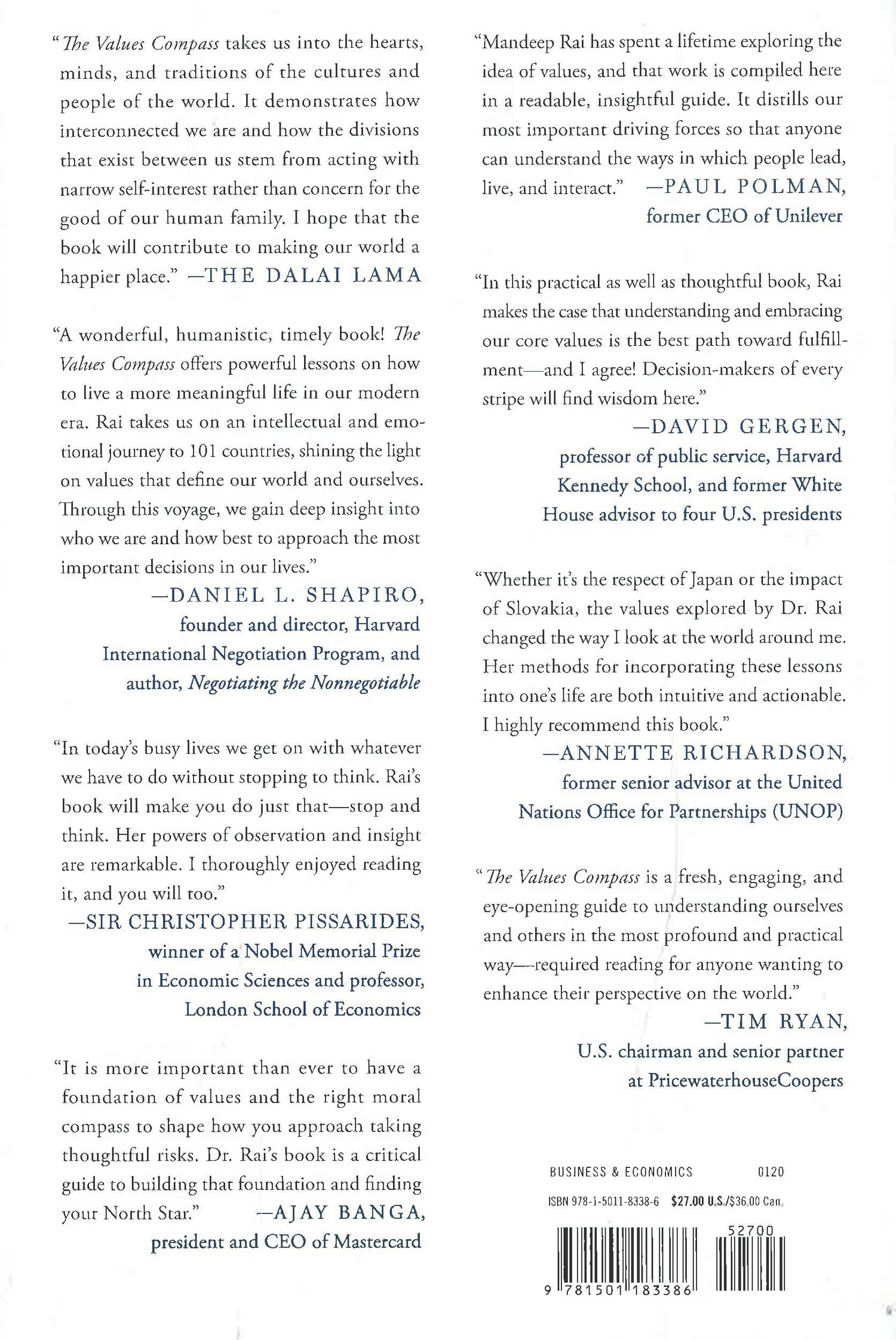 Every day we make decisions based on what we believe in: values that define the ambitions we set, the choices we make, and the relationships we choose. In The Values Compass, Dr. Mandeep Rai shows how the countries of the world epitomize the power of values, provide an ideal guide to help us understand our own, and teach us important lessons about success.