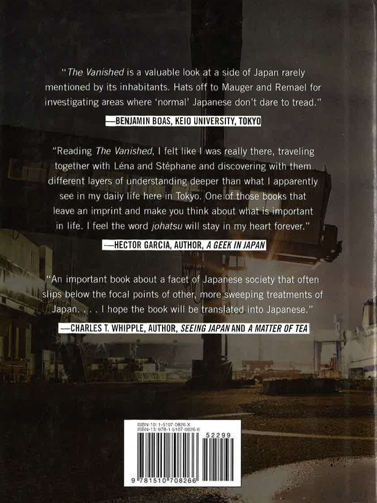 Every year, nearly one hundred thousand Japanese vanish without a trace. Known as the johatsu, or the "evaporated," they are often driven by shame and hopelessness, leaving behind lost jobs, disappointed families, and mounting debts. In The Vanished, journalist Lena Mauger and photographer Stephane Remael uncover the human faces behind the phenomenon through reportage, photographs, and interviews with those who left, those who stayed behind, and those who help orchestrate the disappearances. Their quest to learn the stories of the johatsu weaves its way through: A Tokyo neighborhood so notorious for its petty criminal activities that it was literally erased from the maps Reprogramming camps for subpar bureaucrats and businessmen to become "better" employees The charmless citadel of Toyota City, with its iron grip on its employees The "suicide" cliffs of Tojinbo, patrolled by a man fighting to save the desperate The desolation of Fukushima in the aftermath of the tsunamiAnd yet, as exotic and foreign as their stories might appear to an outsider's eyes, the human experience shared by the interviewees remains powerfully universal.