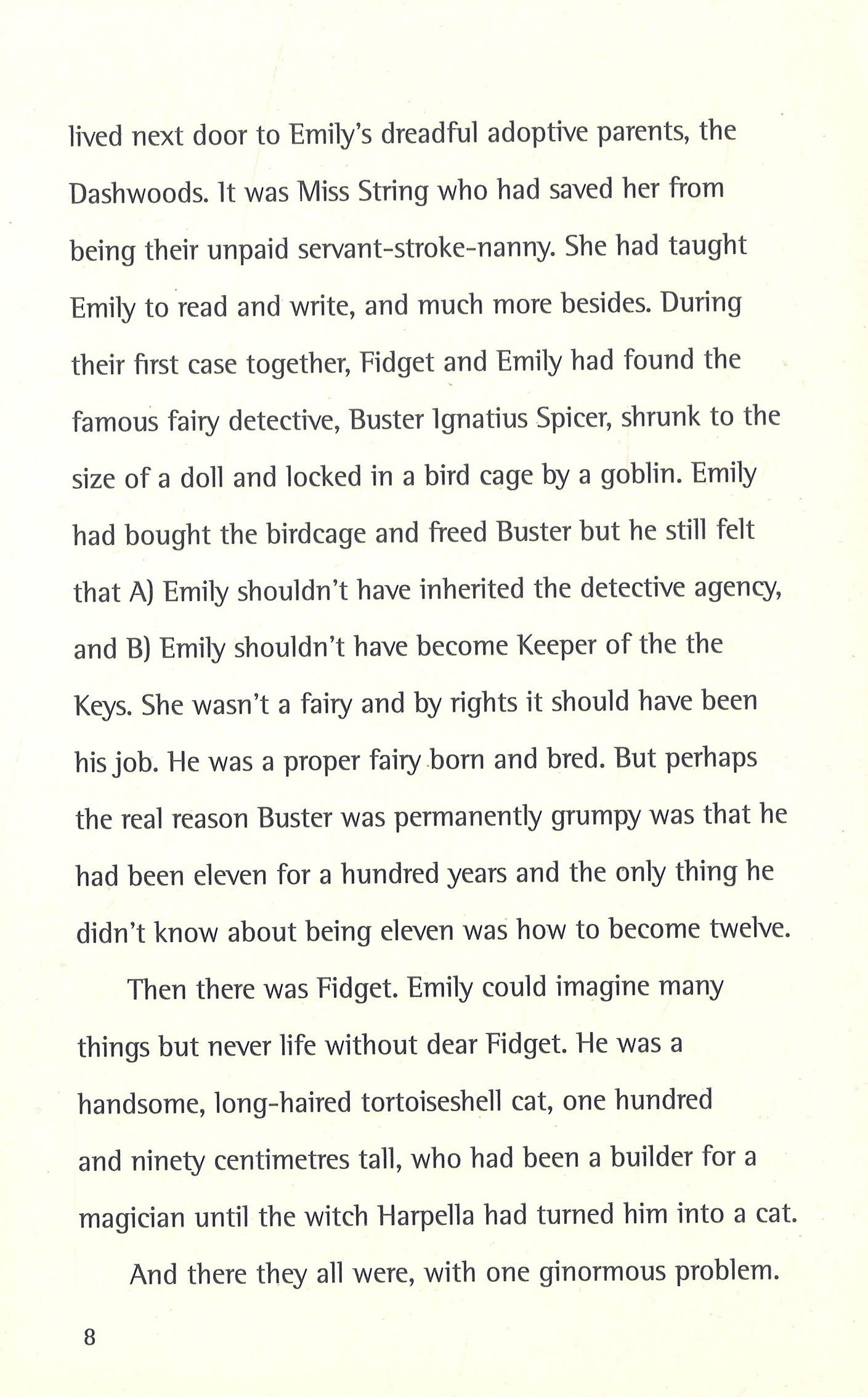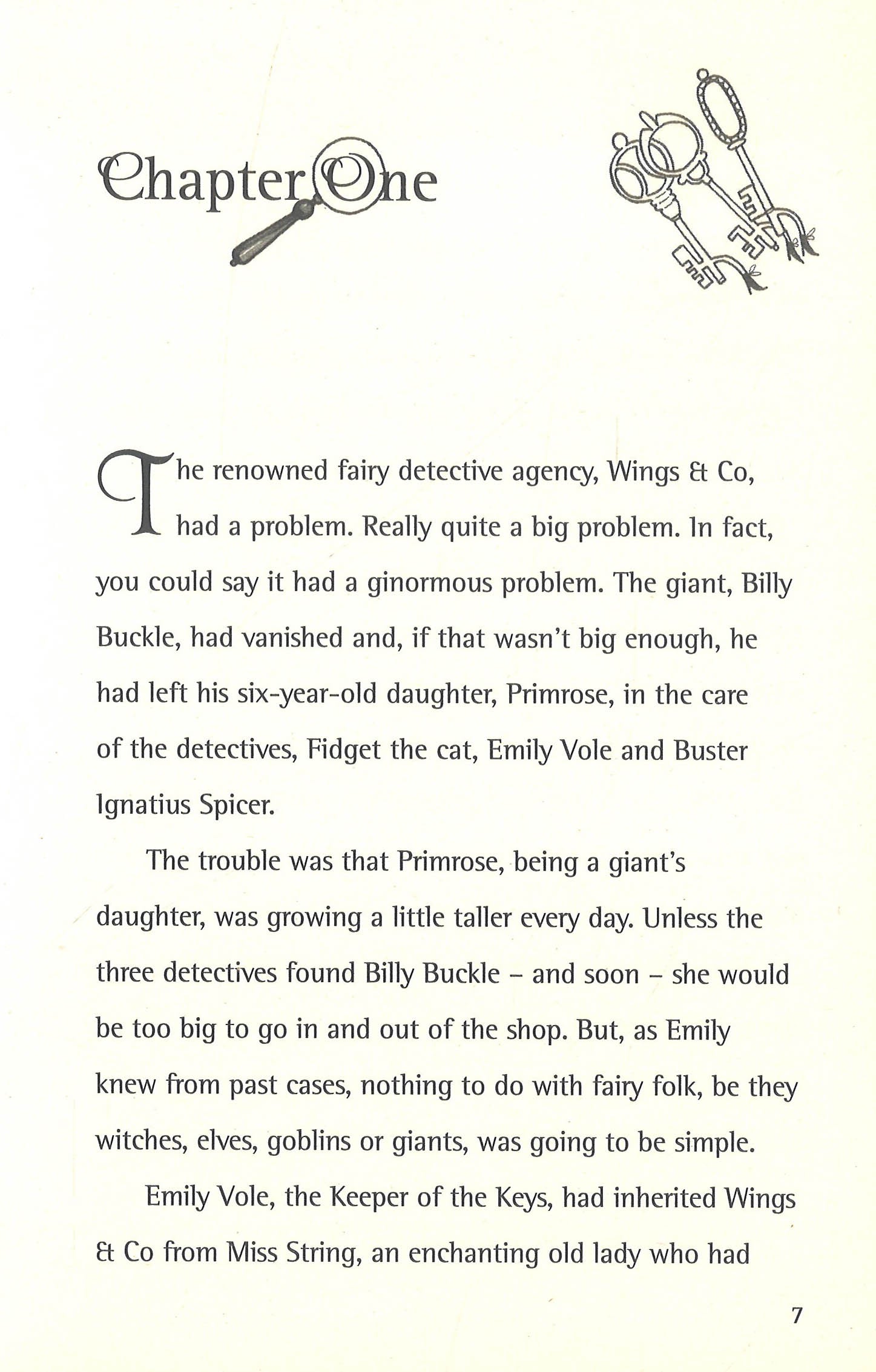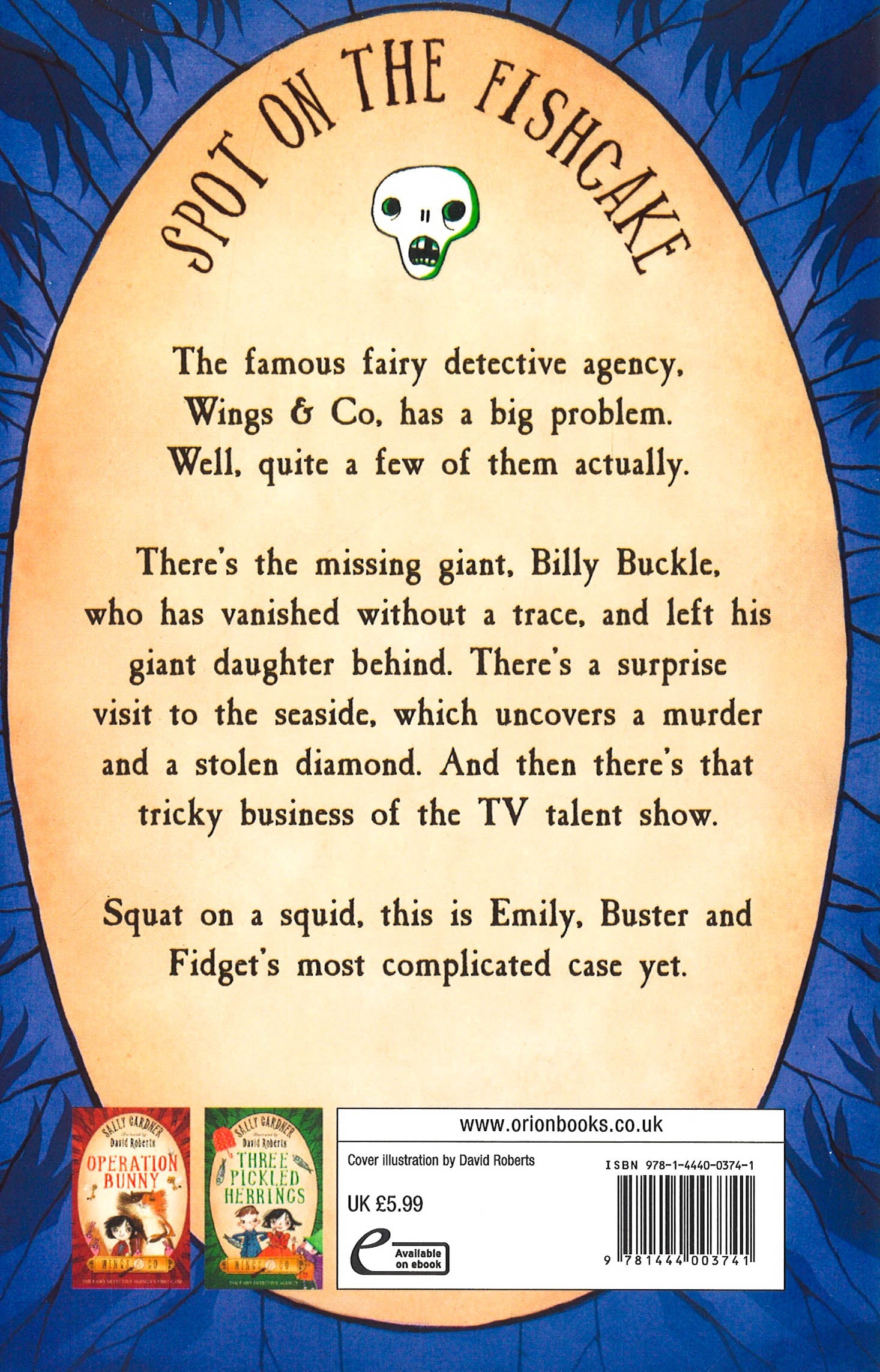 The famous fairy detective agency, Wings & Co, has a problem. Really quite a big problem. Well, a few of them actually. There's the missing giant, Billy Buckle, who has vanished without a trace, and left his giant daughter with the detectives. There's a surprise visit to the seaside, which uncovers a murder and a stolen diamond. And then there's that tricky business of the TV talent show. Squat on a squid, this is Emily, Buster and Fidget's most complicated case yet.