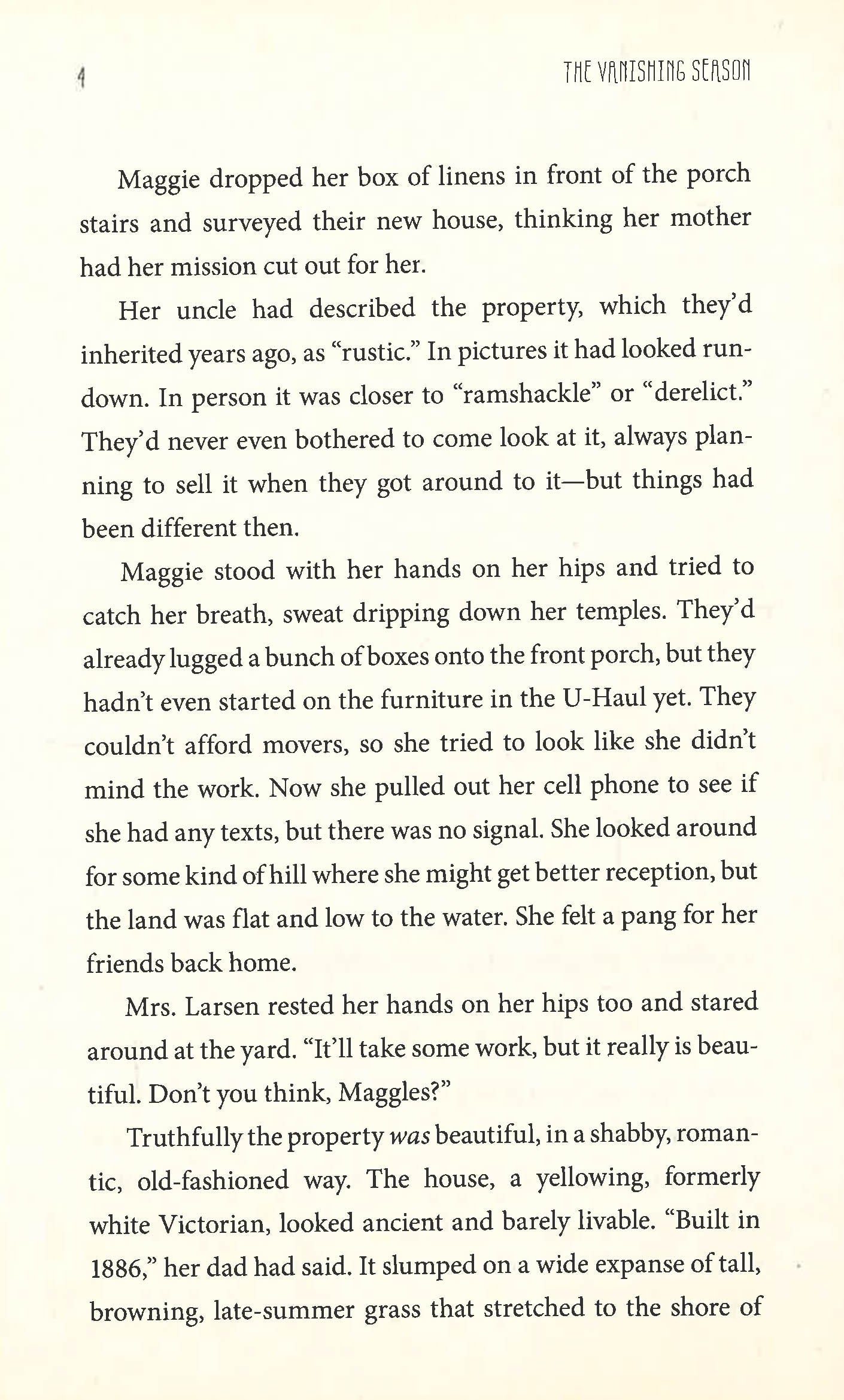 From New York Times bestselling author Jodi Lynn Anderson comes The Vanishing Season, at once haunting and lovely, with a gut-wrenching final twist that will keep readers on their toes. It's perfect for fans of Gayle Forman, Lauren Myracle, and Laurie Halse Anderson. Girls started vanishing in the fall. For Maggie Larsen, the town of Gill Creek is only a stopgap before college and freedom. Until she meets Pauline and Liam. What starts as an uneventful year suddenly changes. Someone is killing teenage girls, and the town reels from the tragedy. As Maggie's and Pauline's worlds collide and change around them, they will both experience love and loss. And by the end of the book, only one of them will survive.