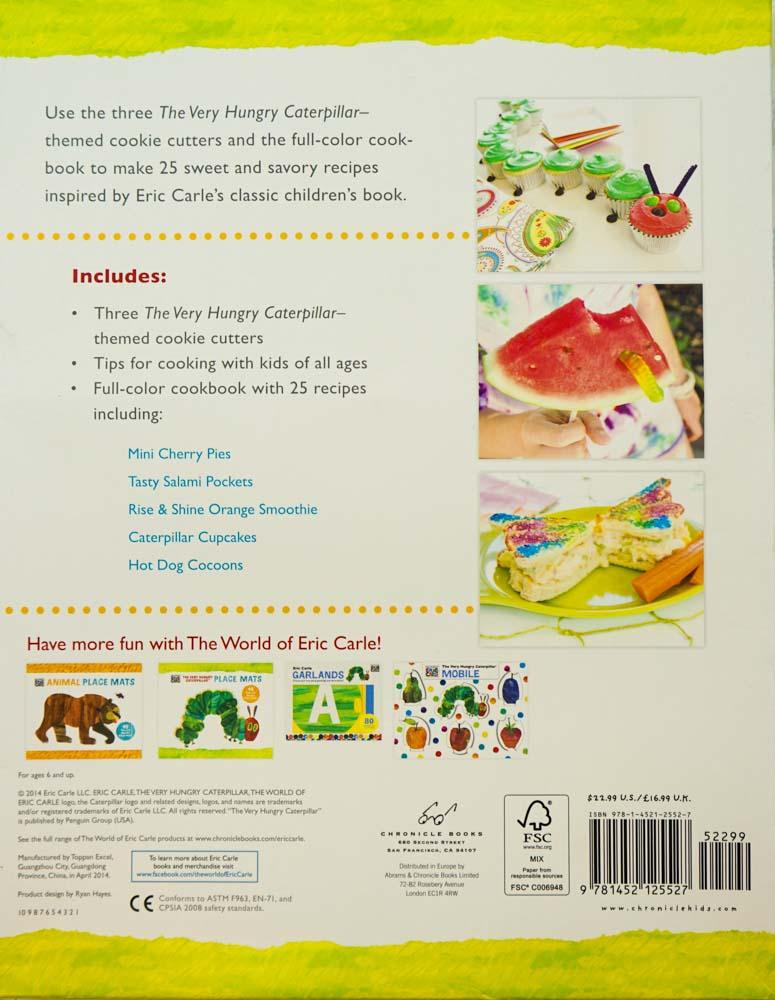 Featuring Eric Carle's The Very Hungry Caterpillar, this cookbook contains 25 delicious recipes as well as 3 shaped cookie cutters: the beloved caterpillar, a circle for the caterpillar to crawl through and the beautiful butterfly. Recipes range from breakfast and snacks to beverages and sweets. Perfect for everyday fun as well as book-themed parties, very hungry kids will rejoice in cooking and eating as well as immersing themselves in the world of their favourite characters.