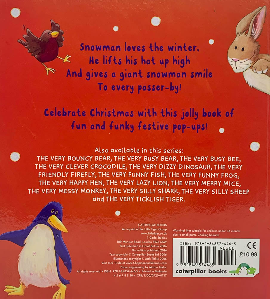 Snowman loves the winter, he lifts his hat up high and gives a giant snowman smile to every passerby! Celebrate Christmas with the jolly book full of fun and festive pop-ups.