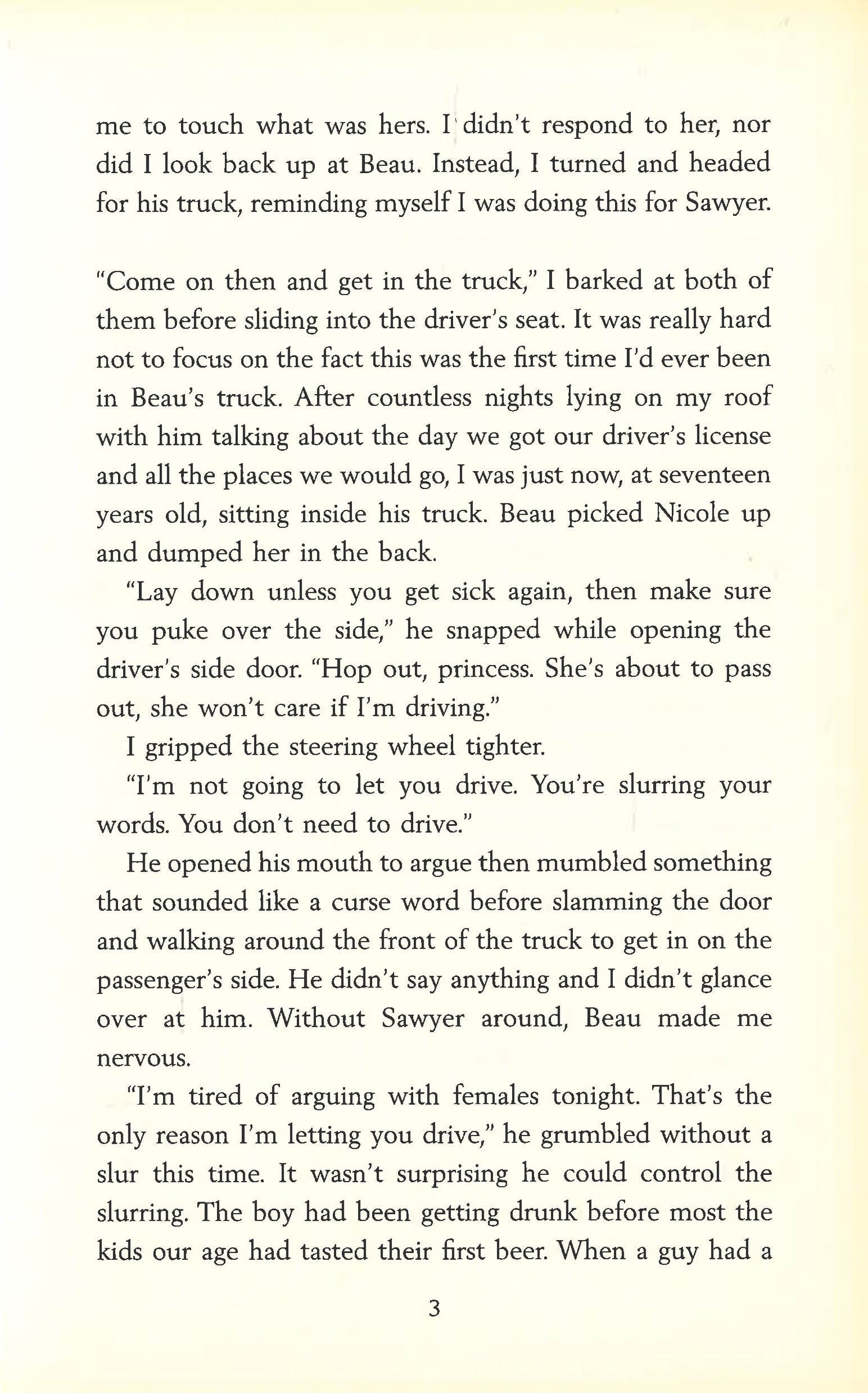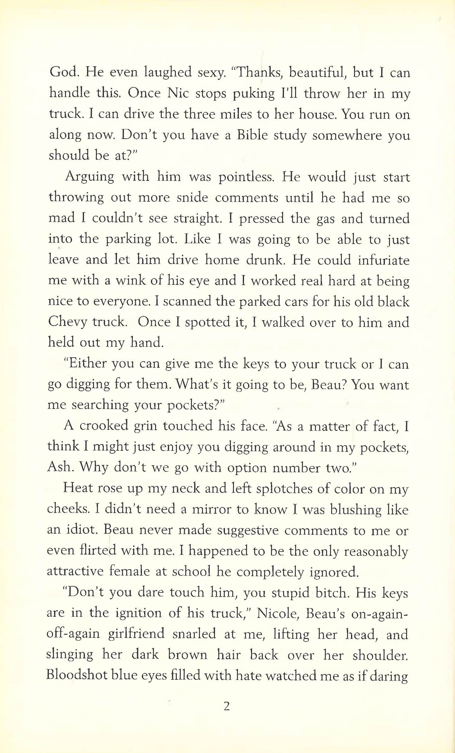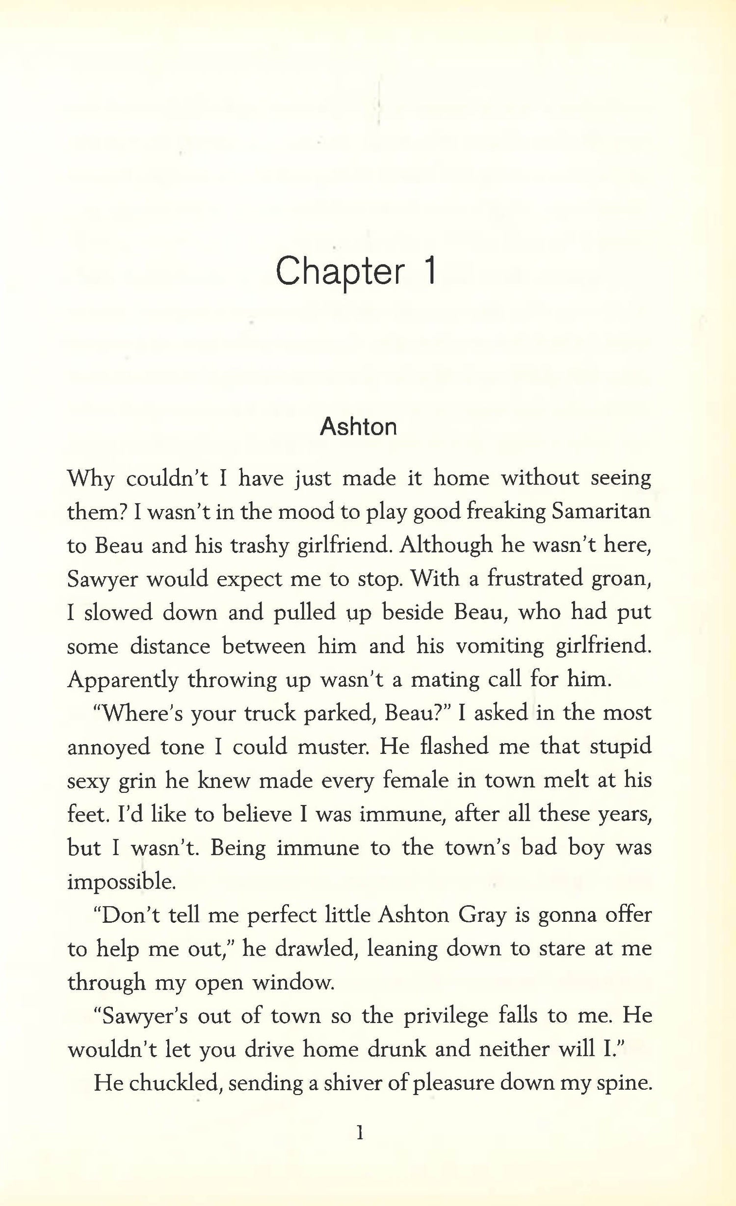 Ashton is getting tired of being good, of impressing her parents and playing ideal girlfriend to Sawyer Vincent. Sawyer is perfect, a regular Prince Charming, but when he leaves town for the summer, it?s his cousin Beau who catches Ashton?s eye. Beau is the sexiest guy she?s ever seen, and even though he?s dangerous, Ashton is drawn to him.