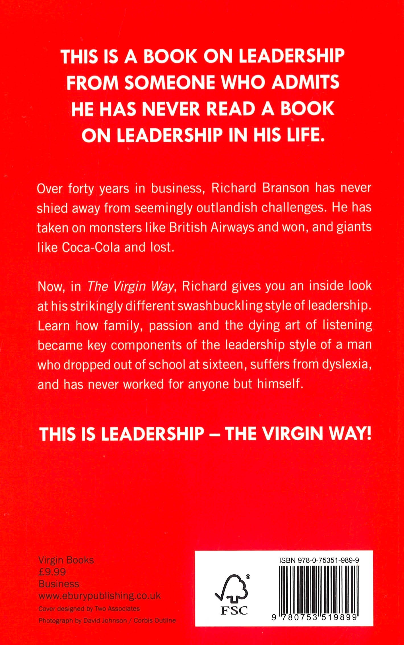 In September 2012, a YOUGOV poll conducted in Britain found that the person British workers would most like as their manager was Sir Richard Branson. With over 40 years in business, Richard Branson is an inspiring pioneer of humanitarian projects and an iconic business leader. In The Virgin Way: How to Listen, Learn, Laugh and Lead, Richard shares and distils his secrets of leadership and success. Featuring anecdotes from his own business dealings, as well as his observations of many others who have inspired him - from politicians, business leaders, explorers, scientists and philanthropists - Richard reflects on the qualities he feels are essential for success in today's world. This is not a conventional book on leadership. There are no rules - but rather the secrets of leadership that he has learned along the way from his days at Virgin Records, to his recent work with The Elders. Whether you're at the beginning of your career, or head of a Fortune 500 company - this is your guide to being your own CEO (Chief Enabling Officer) and becoming a true leader - not just a boss.