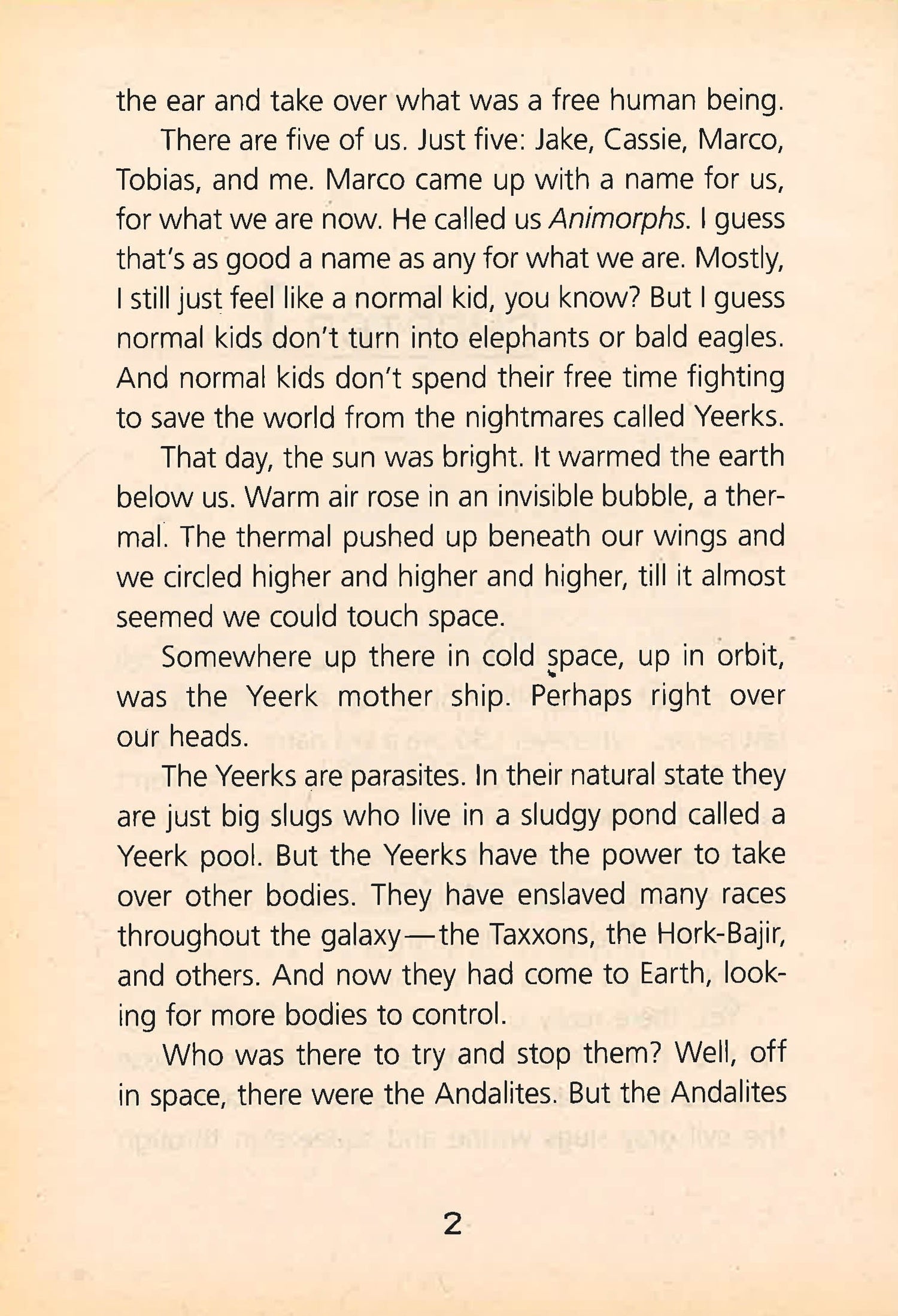 Rachel and her friends have been given the power to morph into any animal they touch. So when Rachel starts to suspect that one of her school friends has fallen into the control of the evil Yeers, she knows just the way to find out the truth.