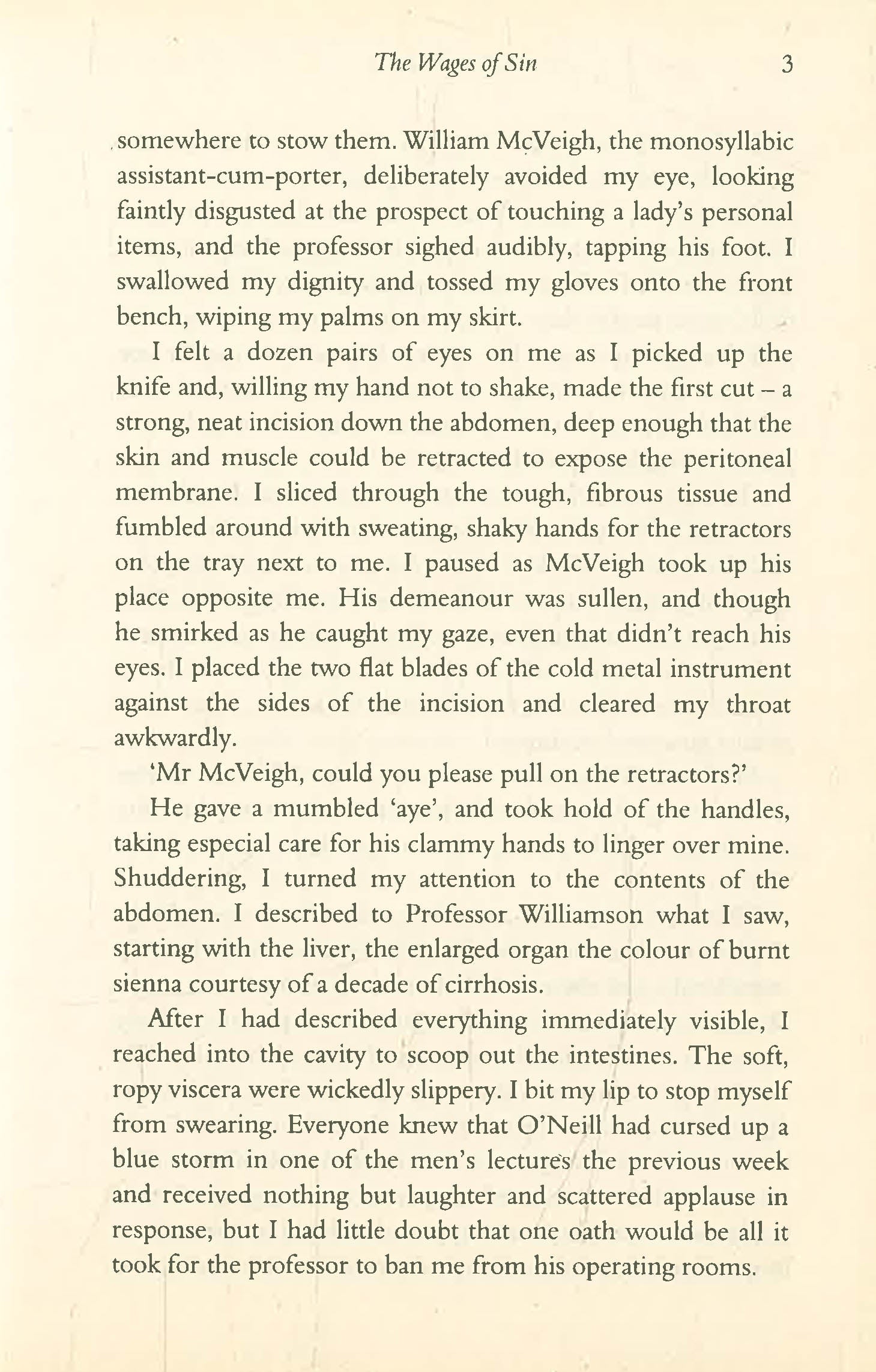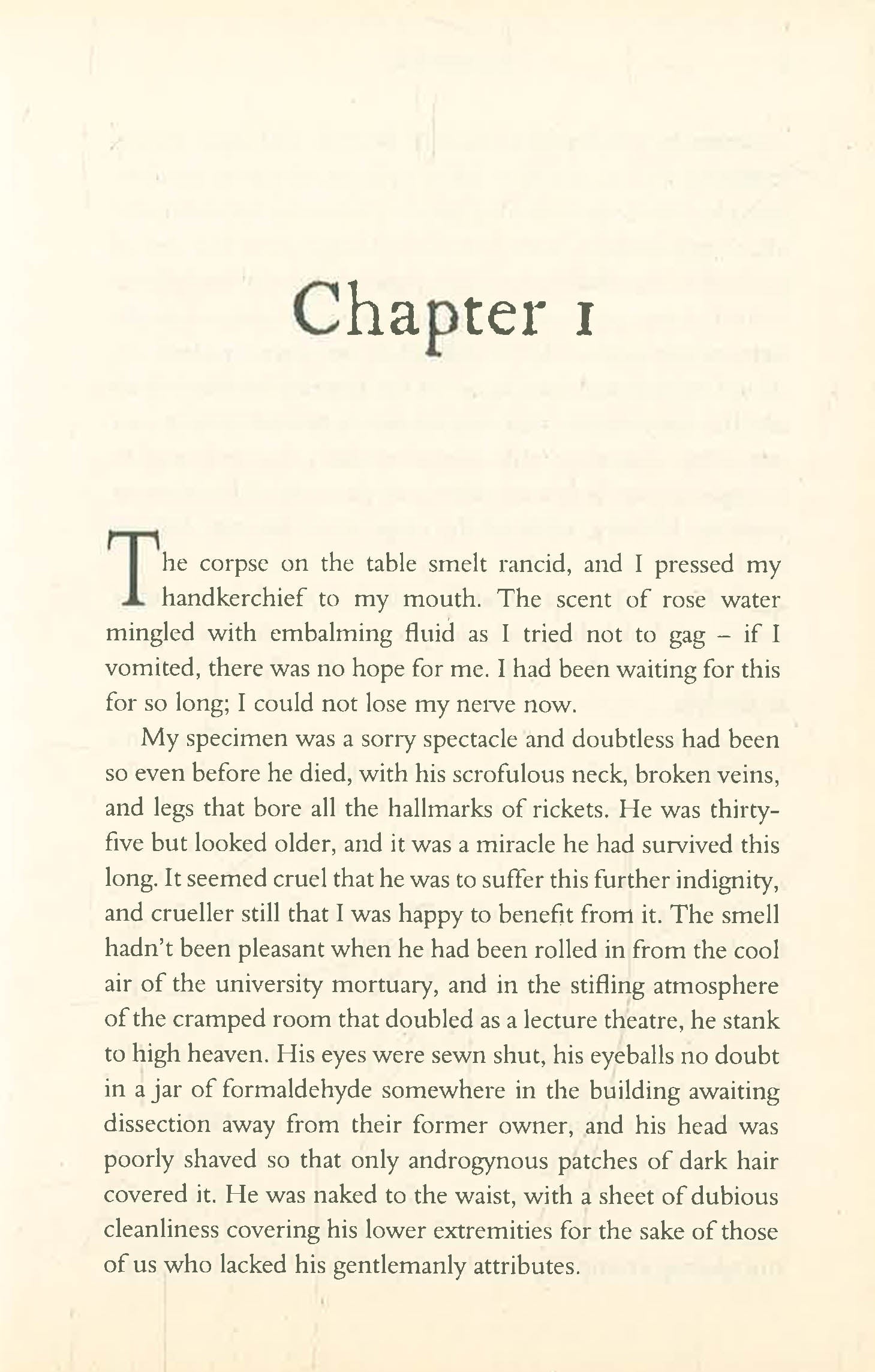 When one of Sarah's patients turns up in the university dissecting room as a battered corpse, Sarah finds herself drawn into Edinburgh's dangerous underworld of bribery, brothels and body snatchers - and a confrontation with her own past.