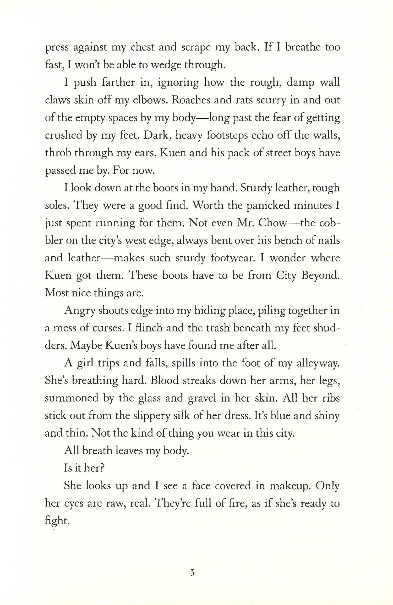 730. That's how many days I've been trapped.""18. That's how many days I have left to find a way out." Dai, trying to escape a haunting past, traffics drugs for the most ruthless kingpin in the Walled City. But in order to find the key to his freedom, he needs help from someone with the power to be invisible.... Jin hides under the radar, afraid the wild street gangs will discover her biggest secret: Jin passes as a boy to stay safe. Still, every chance she gets, she searches for her lost sister.... Mei Yee has been trapped in a brothel for the past two years, dreaming of getting out while watching the girls who try fail one by one. She's about to give up, when one day she sees an unexpected face at her window..... In this innovative and adrenaline-fueled novel, they all come together in a desperate attempt to escape a lawless labyrinth before the clock runs out.
