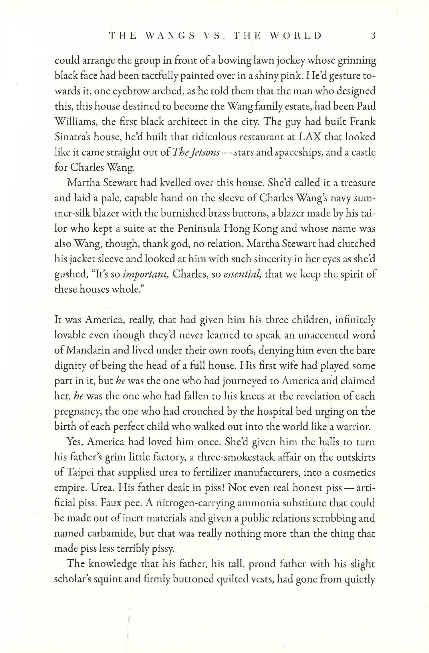 The Wangs vs. the World is an outrageously funny tale about a wealthy Chinese-American family that "loses it all, then takes a healing, uproarious road trip across the United States" (Entertainment Weekly). Their spectacular fall from riches to rags brings the Wangs together in a way money never could. It's an epic family saga and an entirely fresh look at what it means to belong in America. *This book may have remainder mark*
