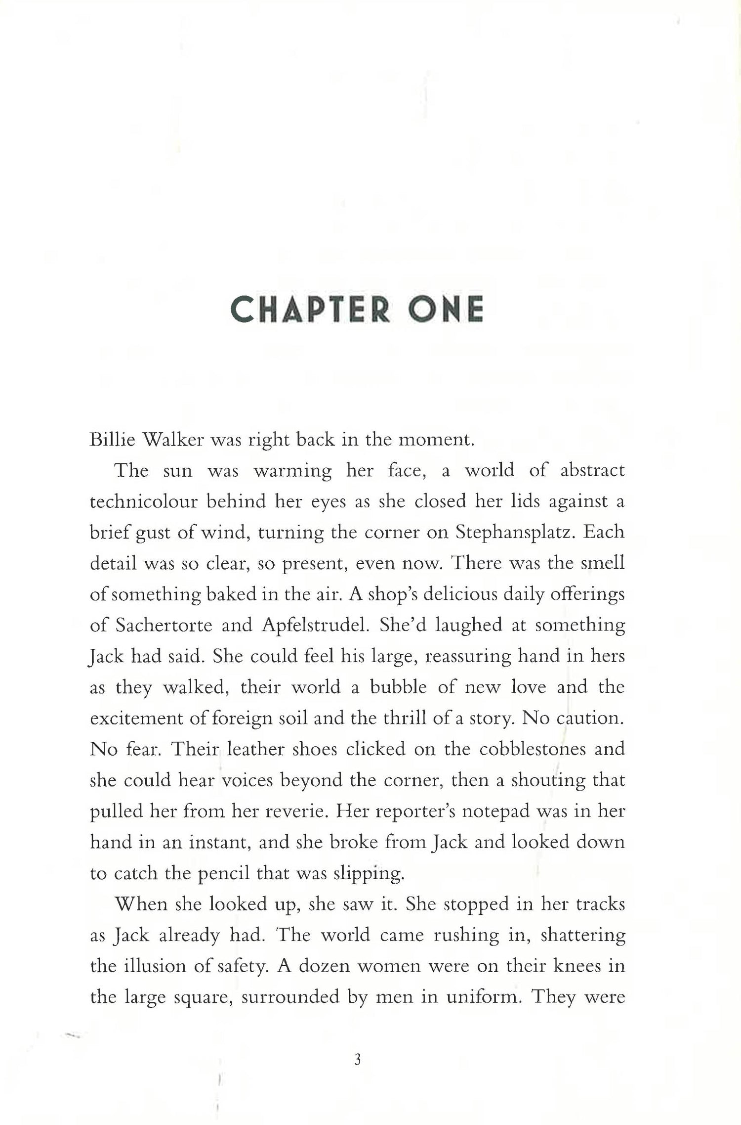 The war may be officially over, but journalist Billie Walker's search for a missing young immigrant man will plunge her right back into the danger and drama she thought she'd left behind in Europe in this thrilling tale of courage and secrets set in glamorous postwar Sydney.