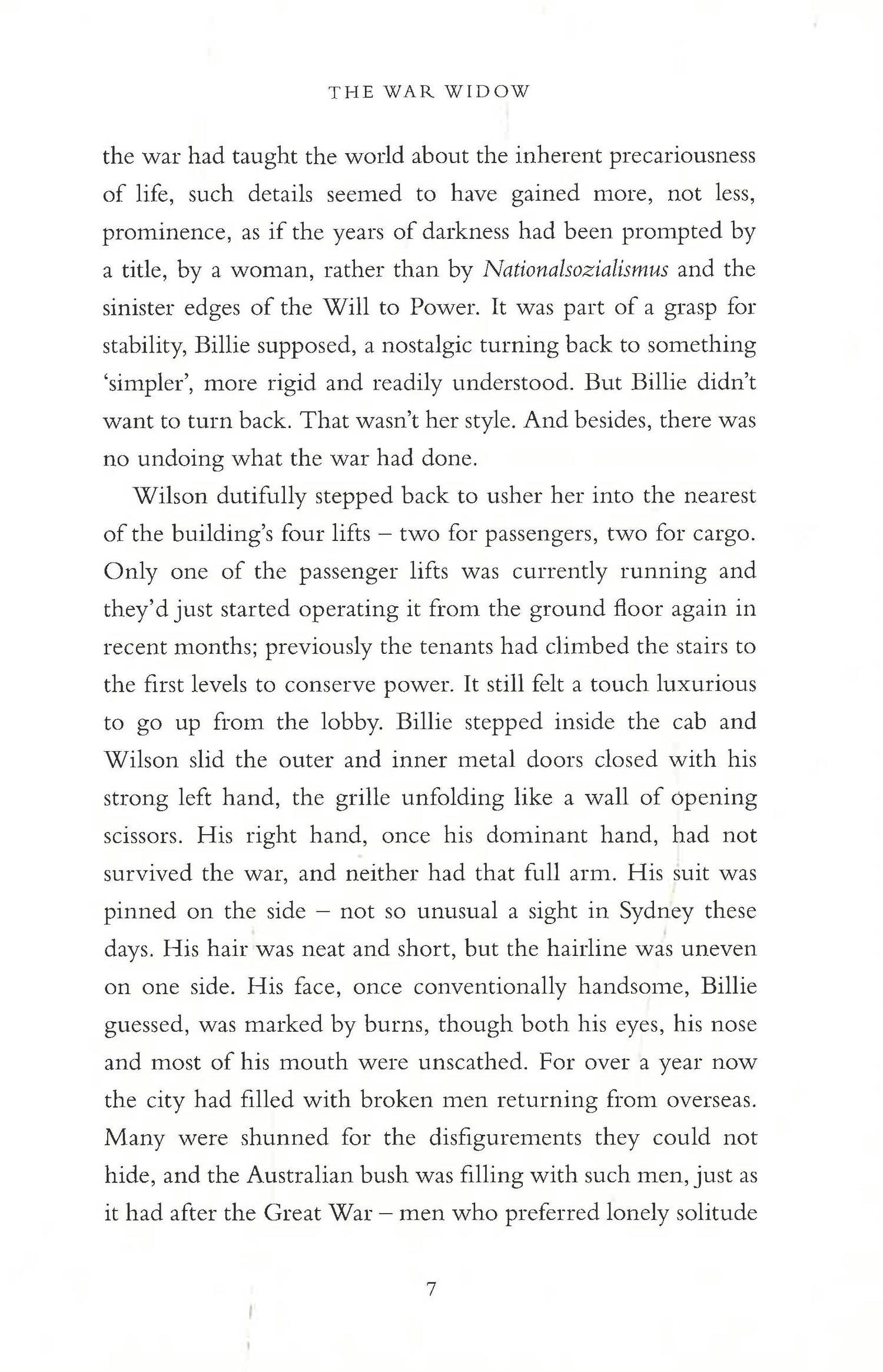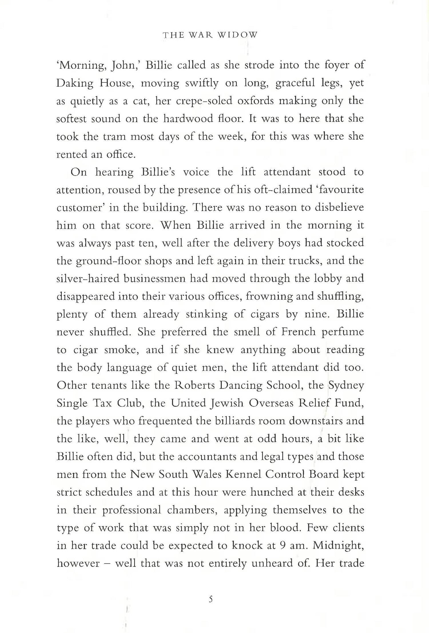 Sydney, 1946. Though war correspondent Billie Walker is happy to finally be home, for her the heady postwar days are tarnished by the loss of her father and the disappearance in Europe of her husband, Jack. To make matters worse, now that the war is over, the newspapers are sidelining her reporting talents to prioritize jobs for returning soldiers. But Billie is a survivor and she's determined to take control of her own future. So she reopens her late father's business, a private investigation agency, and, slowly, the women of Sydney come knocking.