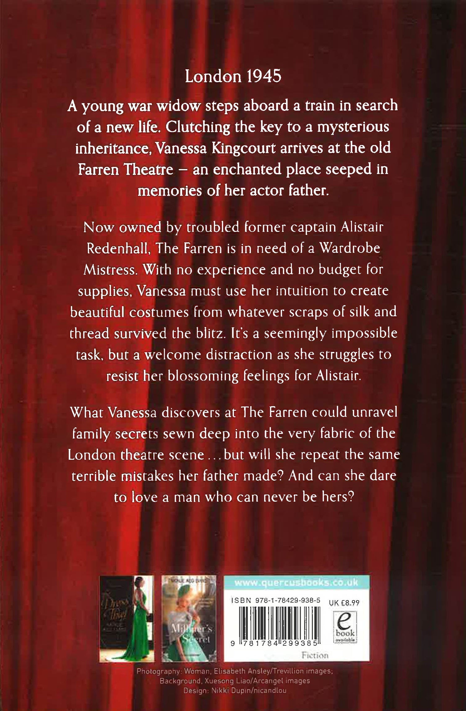 Now owned by troubled former captain Alistair Redenhall, The Farren is in need of a Wardrobe Mistress and a new lease of life. With no experience and no budget for supplies, Vanessa must use her intuition to create beautiful costumes from whatever scraps of silk and thread survived the blitz. It's a seemingly impossible task, but a welcome distraction as she struggles to resist her blossoming feelings for Alistair.
