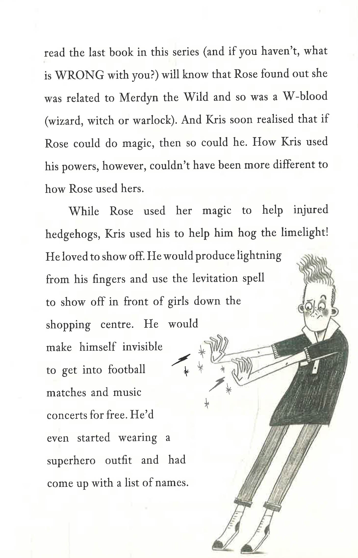 Rose, Merdyn and Bubbles the guinea pig must team up to save the day. But can they rescue Kris without creating historical mayhem? Will Rose's wizard ancestor even remember her? (And want to help them?) And will Bubbles ever stop pooing?