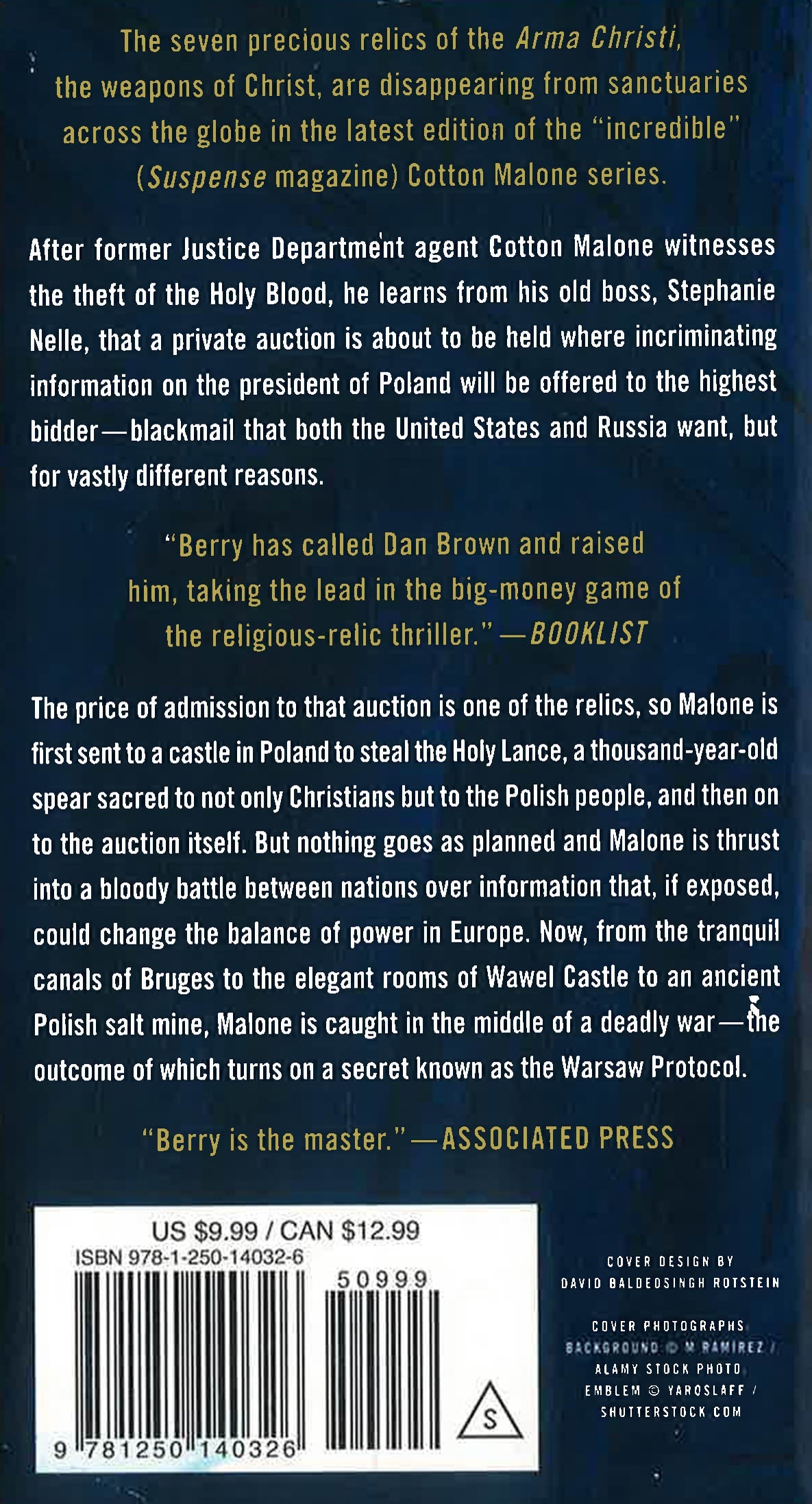 The price of admission to that auction is one of the relics, so Malone is first sent to a castle in Poland to steal the Holy Lance, a thousand-year-old spear sacred to not only Christians but to the Polish people, and then on to the auction itself. But nothing goes as planned and Malone is thrust into a bloody battle between three nations over information that, if exposed, could change the balance of power in Europe.