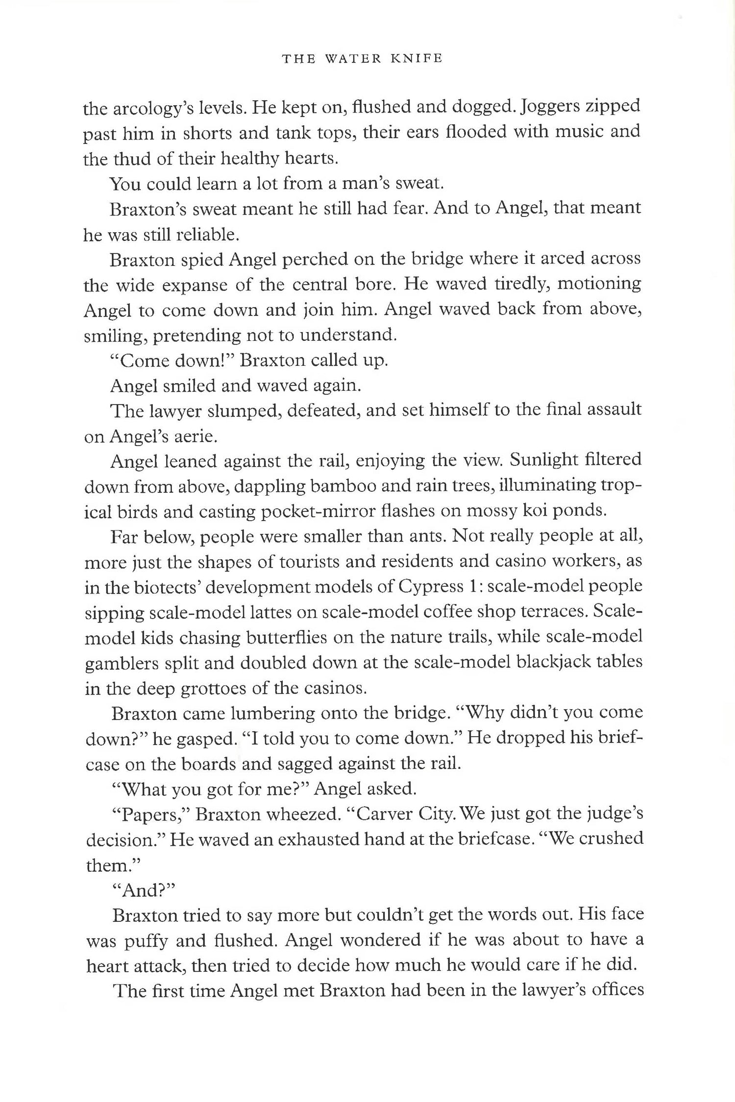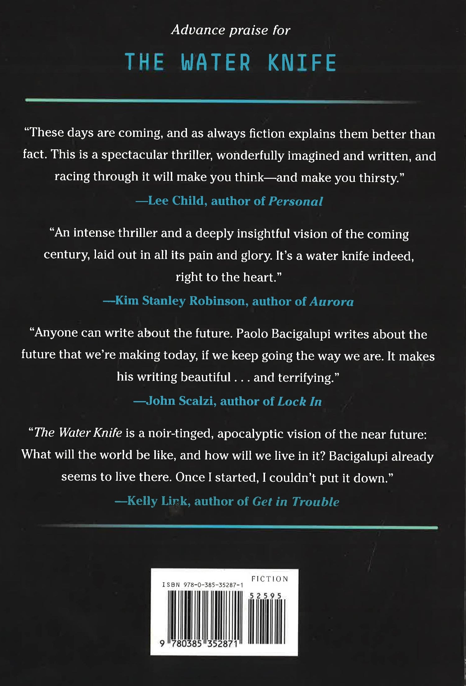 WATER IS POWER Paolo Bacigalupi, "New York Times" best-selling author of "The Windup Girl" and National Book Award finalist, delivers a near-future thriller that casts new light on how we live today and what may be in store for us tomorrow. The American Southwest has been decimated by drought. Nevada and Arizona skirmish over dwindling shares of the Colorado River, while California watches, deciding if it should just take the whole river all for itself. Into the fray steps Las Vegas water knife Angel Velasquez. Detective, assassin, and spy, Angel cuts water for the Southern Nevada Water Authority and its boss, Catherine Case, ensuring that her lush, luxurious arcology developments can bloom in the desert and that anyone who challenges her is left in the gutted-suburban dust. When rumors of a game-changing water source surface in Phoenix, Angel is sent to investigate. With a wallet full of identities and a tricked-out Tesla, Angel arrows south, hunting for answers that seem to evaporate as the heat index soars and the landscape becomes more and more oppressive. There, Angel encounters Lucy Monroe, a hardened journalist, who knows far more about Phoenix s water secrets than she admits, and Maria Villarosa, a young Texas migrant, who dreams of escaping north to those places where water still falls from the sky. As bodies begin to pile up and bullets start flying, the three find themselves pawns in a game far bigger, more corrupt, and dirtier than any of them could have imagined. With Phoenix teetering on the verge of collapse and time running out for Angel, Lucy, and Maria, their only hope for survival rests in one another s hands. But when water is more valuable than gold, alliances shift like sand, and the only truth in the desert is that someone will have to bleed if anyone hopes to drink." *This book may have remainder mark & deckle edges*