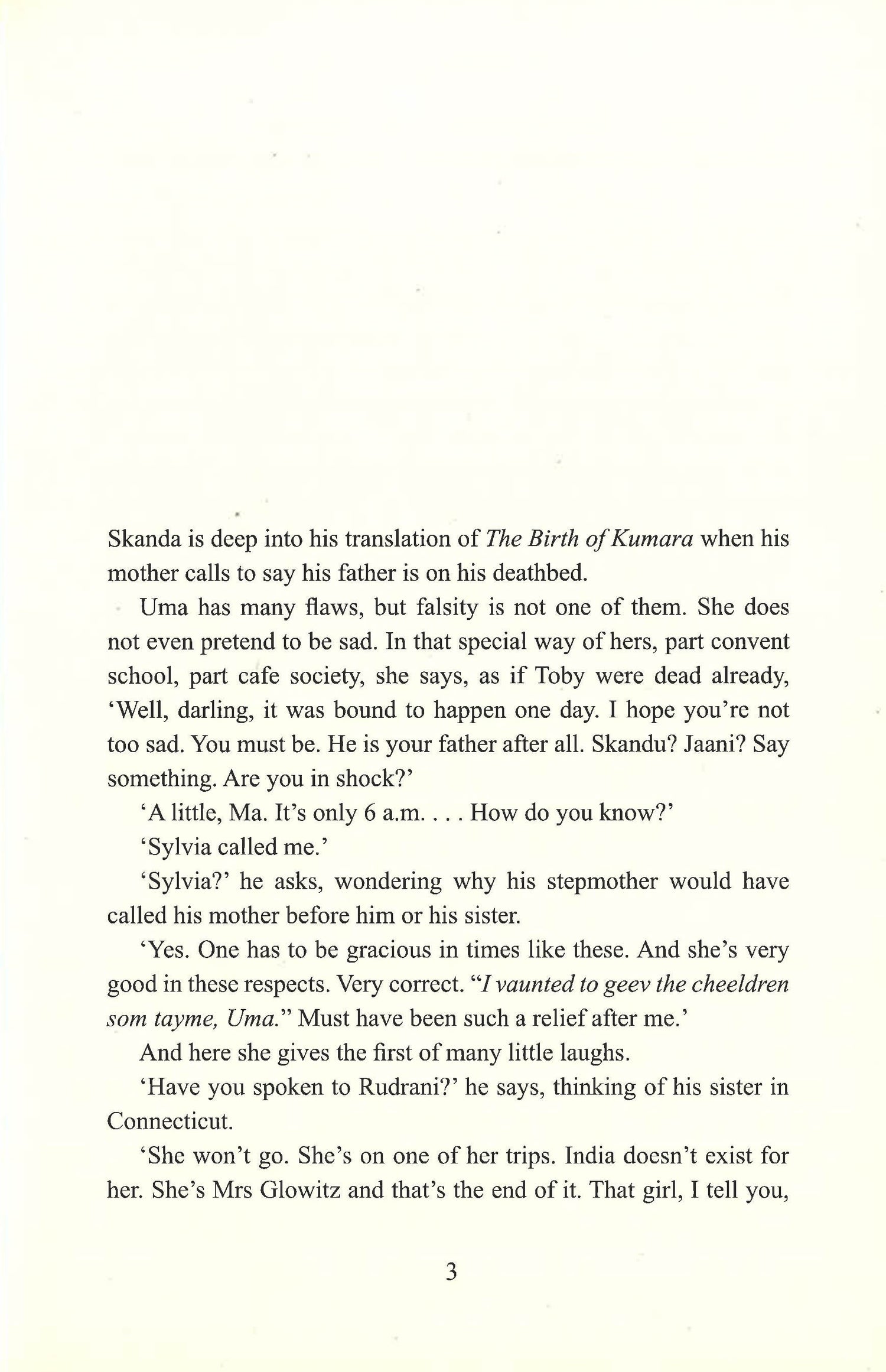 When Skanda's father Toby dies, estranged from Skanda's mother and from the India he once loved, it falls to Skanda to return his body to his birthplace. This is a journey that takes him halfway around the world and deep within three generations of his family, whose fractures, frailties and toxic legacies he has always sought to elude.