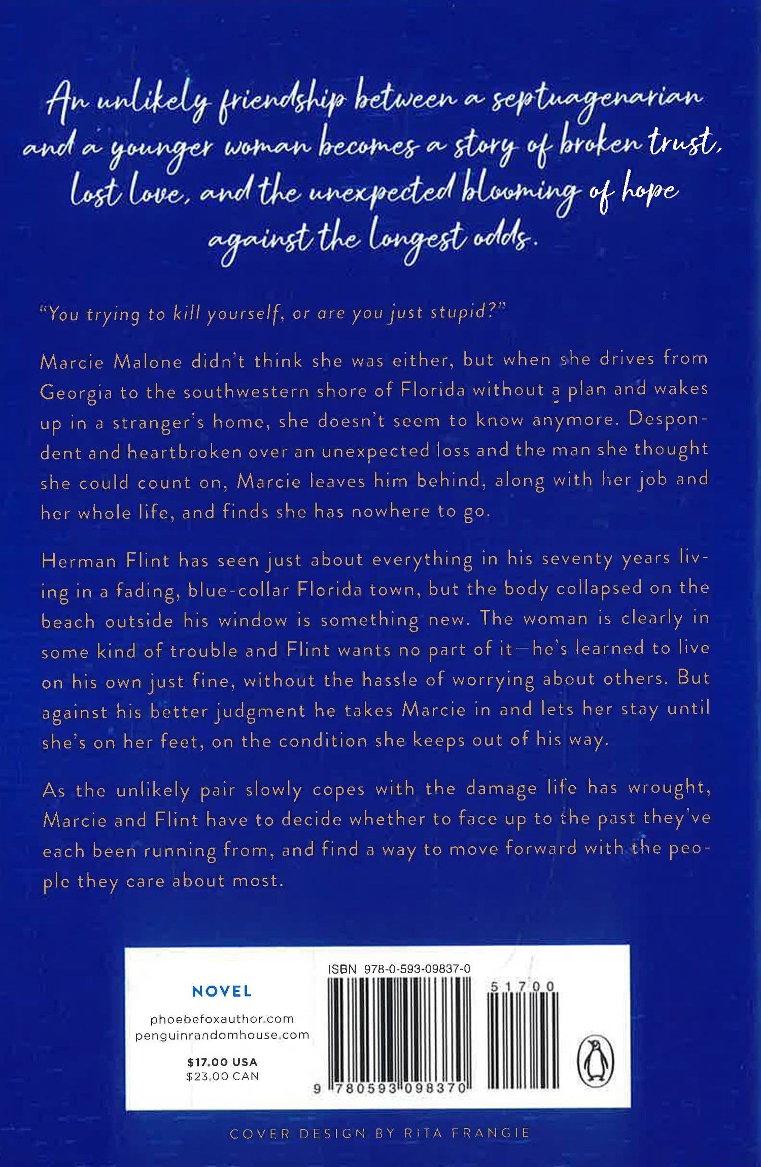 Herman Flint has seen just about everything in his seventy years living in a fading, blue-collar Florida town, but the body collapsed on the beach outside his window is something new. The woman is clearly in some kind of trouble and Flint wants no part of it—he's learned to live on his own just fine, without the hassle of worrying about others. But against his better judgment he takes Marcie in and lets her stay until she's on her feet on the condition she keeps out of his way.
