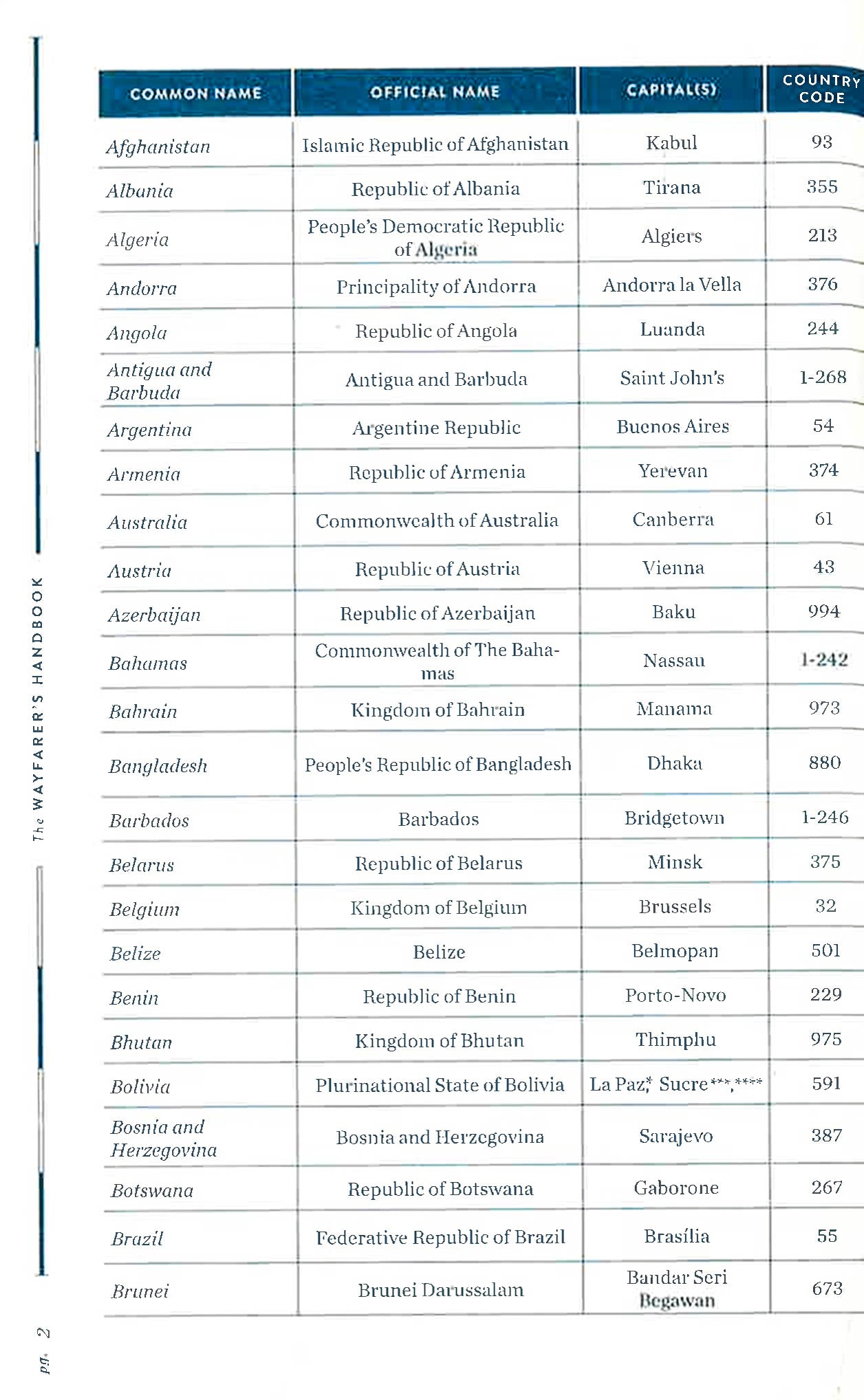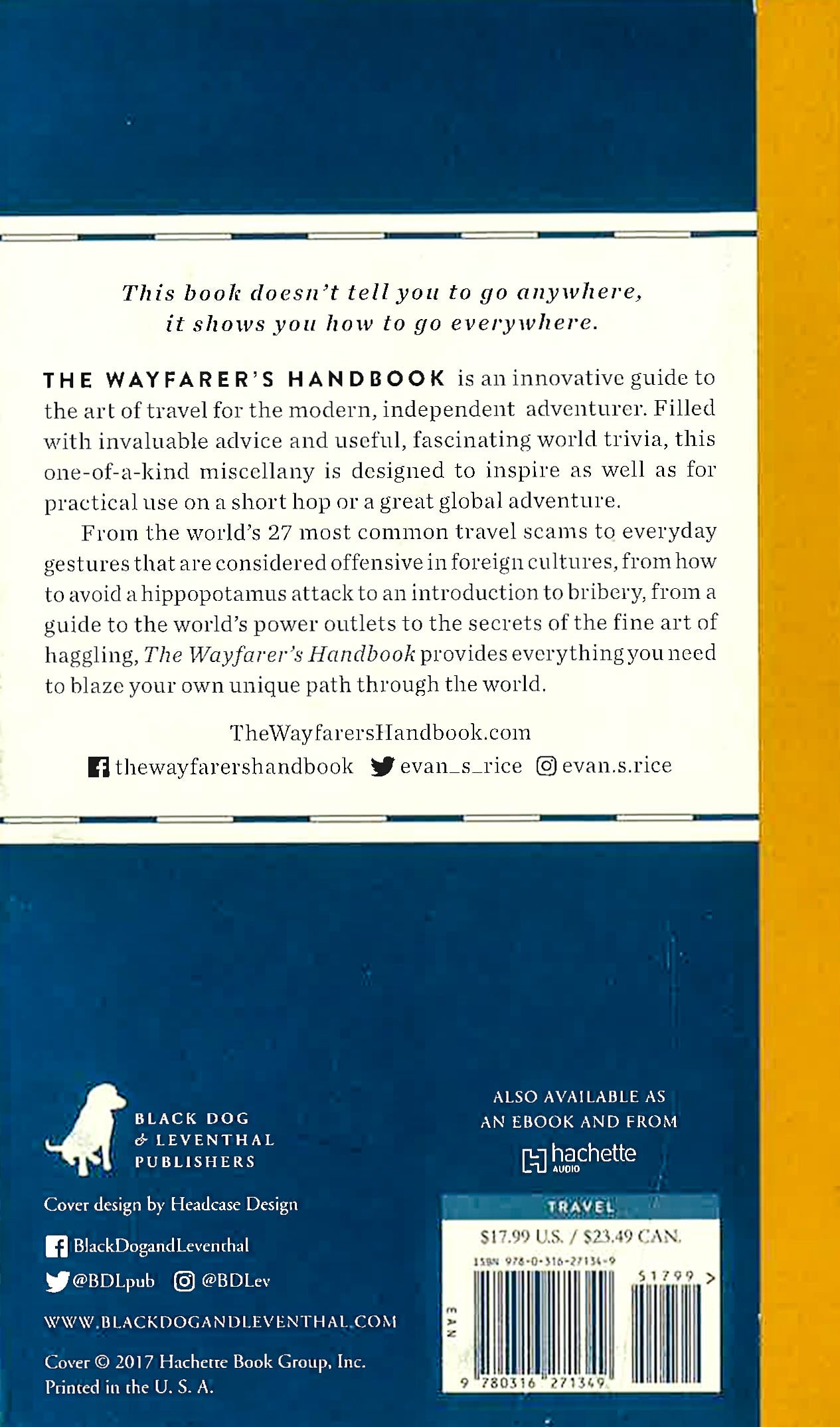 The Wayfarer's Handbook is a treasure trove of information about the art of travel that is specifically crafted for the modern adventurer. The book is an offbeat guide full of actionable advice, a worldwide exploration reference work, an unconventional collection of world trivia, and an exciting resource of inspiration, all designed for use in a great global adventure. With a visual aesthetic inspired by the look of vintage field guides, The Wayfarer's Handbook is tailor-made for modern readers, providing the distilled essentials of hundreds of interesting topics, presented in a direct and precise but stylish way. This twist on traditional travel genres covers everything from the world's 27 most common travel scams and the fascinating history of hot air balloons to everyday gestures that are offensive in foreign cultures and how to avoid a hippopotamus attack. Sketches, infographics, small maps, and illustrative charts appear throughout, allowing readers to open to any page and discover fascinating new insights into the art of travel. Though The Wayfarer's Handbook is compact enough for the road, it is equally suited to be a gem in the library of anyone interested in exploration.