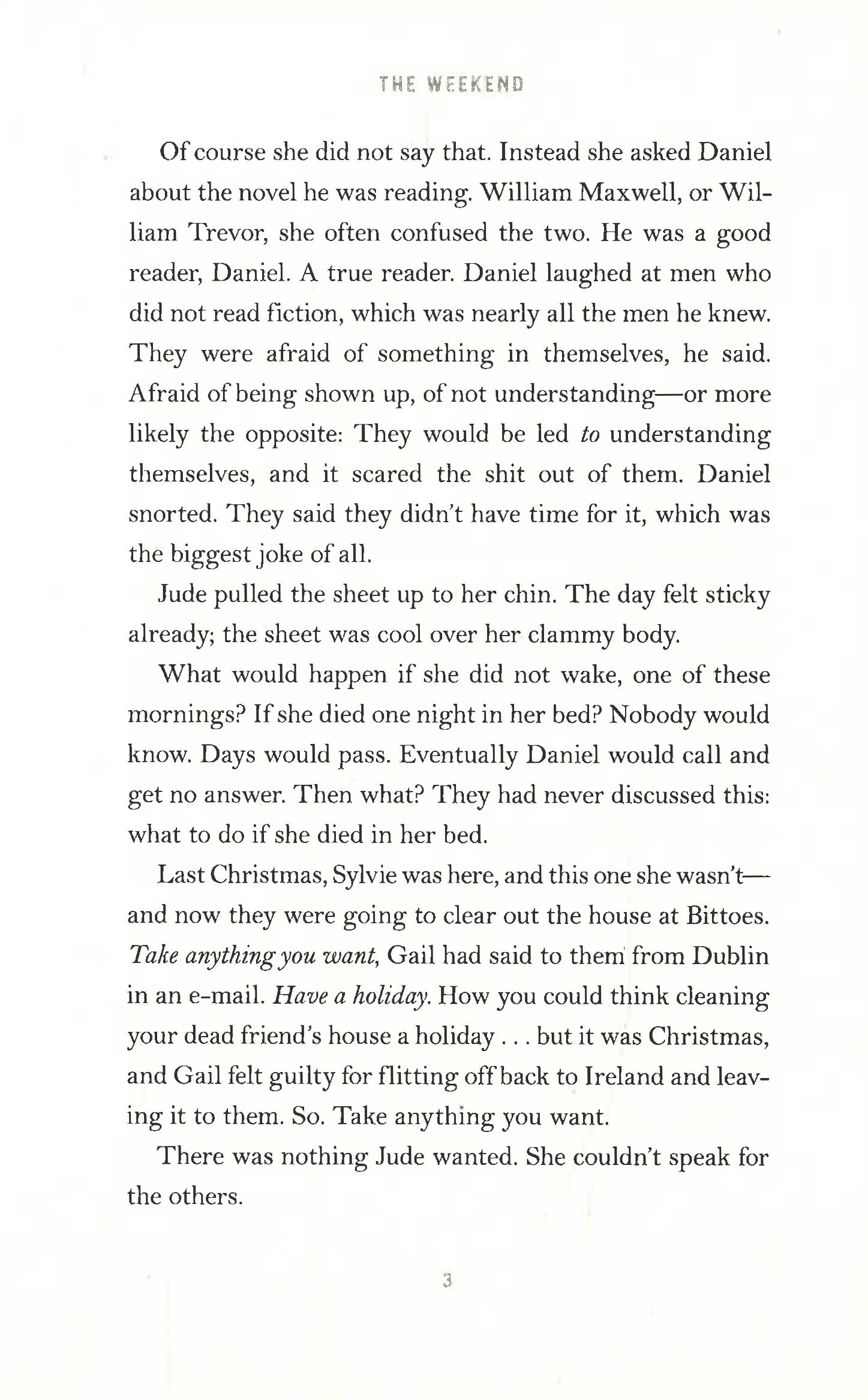 The Weekend explores growing old and growing up, and what happens when we’re forced to uncover the lies we tell ourselves. Sharply observed and excruciatingly funny, this is a jewel of a book: a celebration of tenderness and friendship from an award-winning writer.