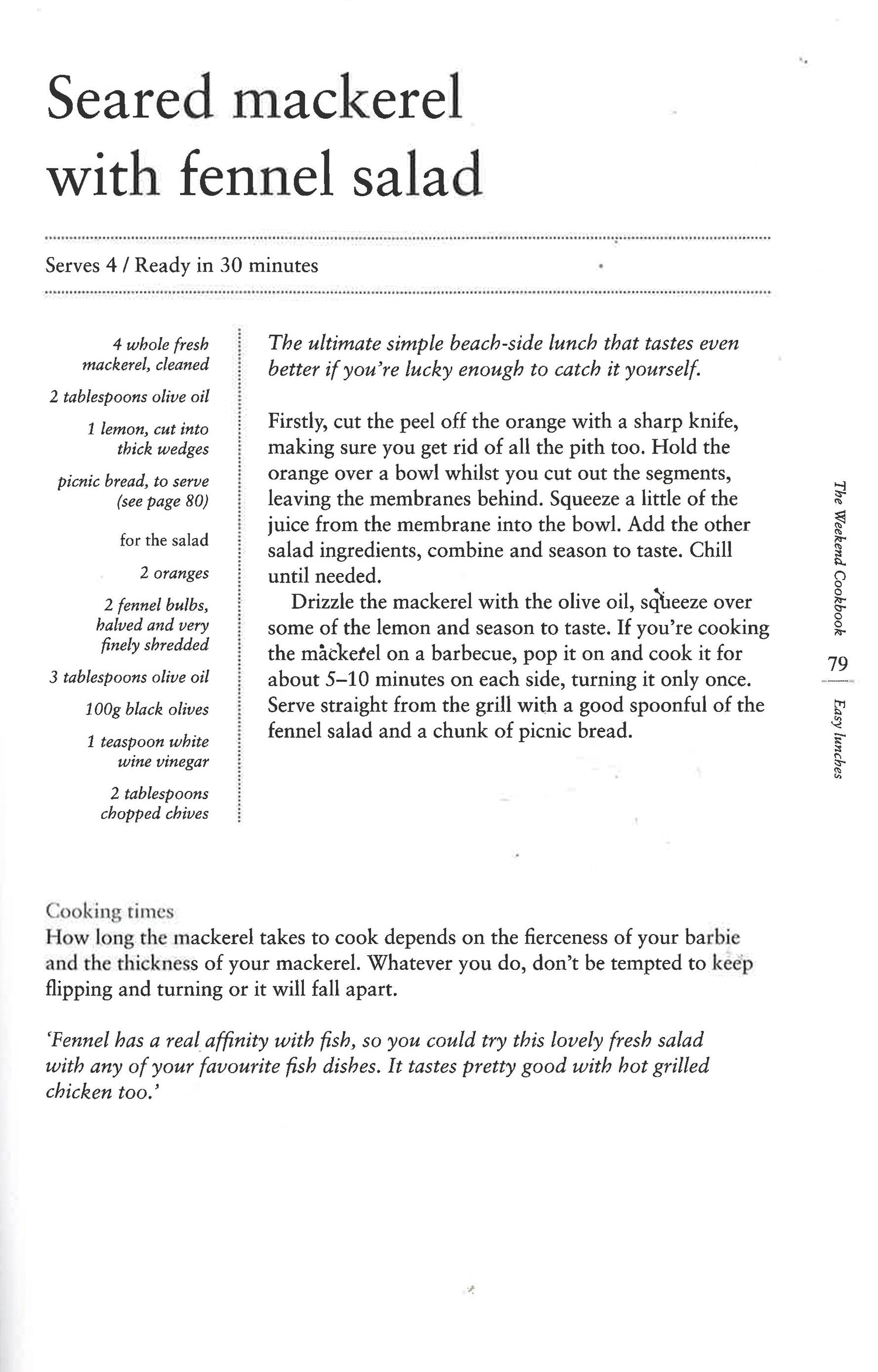 Choose from quick, clever recipes like Tomato and Tallegio Tart or Sticky Mango Chicken Salad when you get in late on a Friday night. With a bit more time, impress on a Saturday with Prawn and Chorizo Stew or Marmalade Glazed Barbecue Ribs. And for a Sunday lunch to round off the weekend choose from lots of slow-cook, low maintenance ideas like Moroccan Leg of Lamb with Chickpeas, or Horseradish and Sugar-crusted Beef with Watercress Pesto - perfect for heading home to after a Sunday walk or drink at the pub.