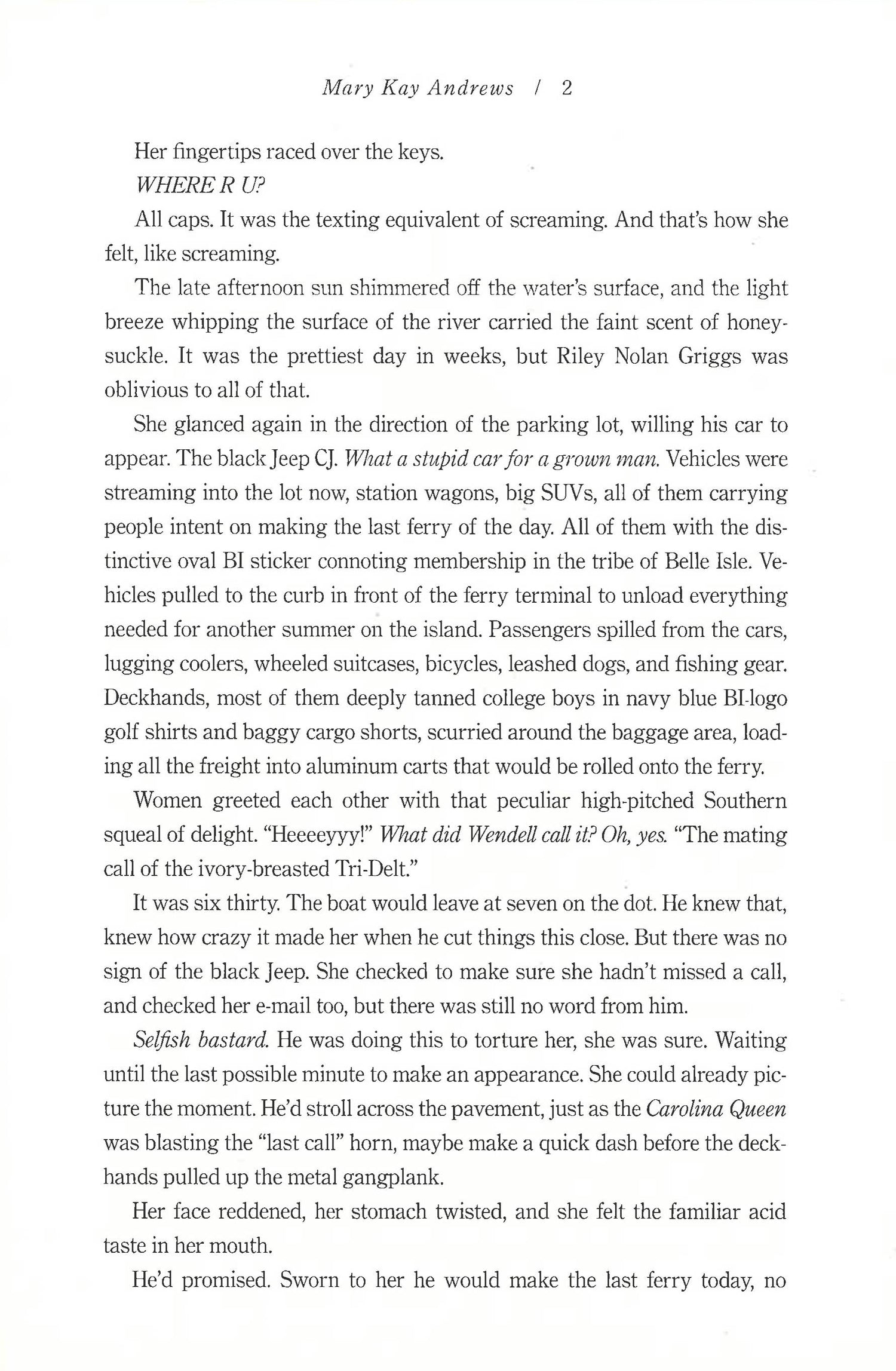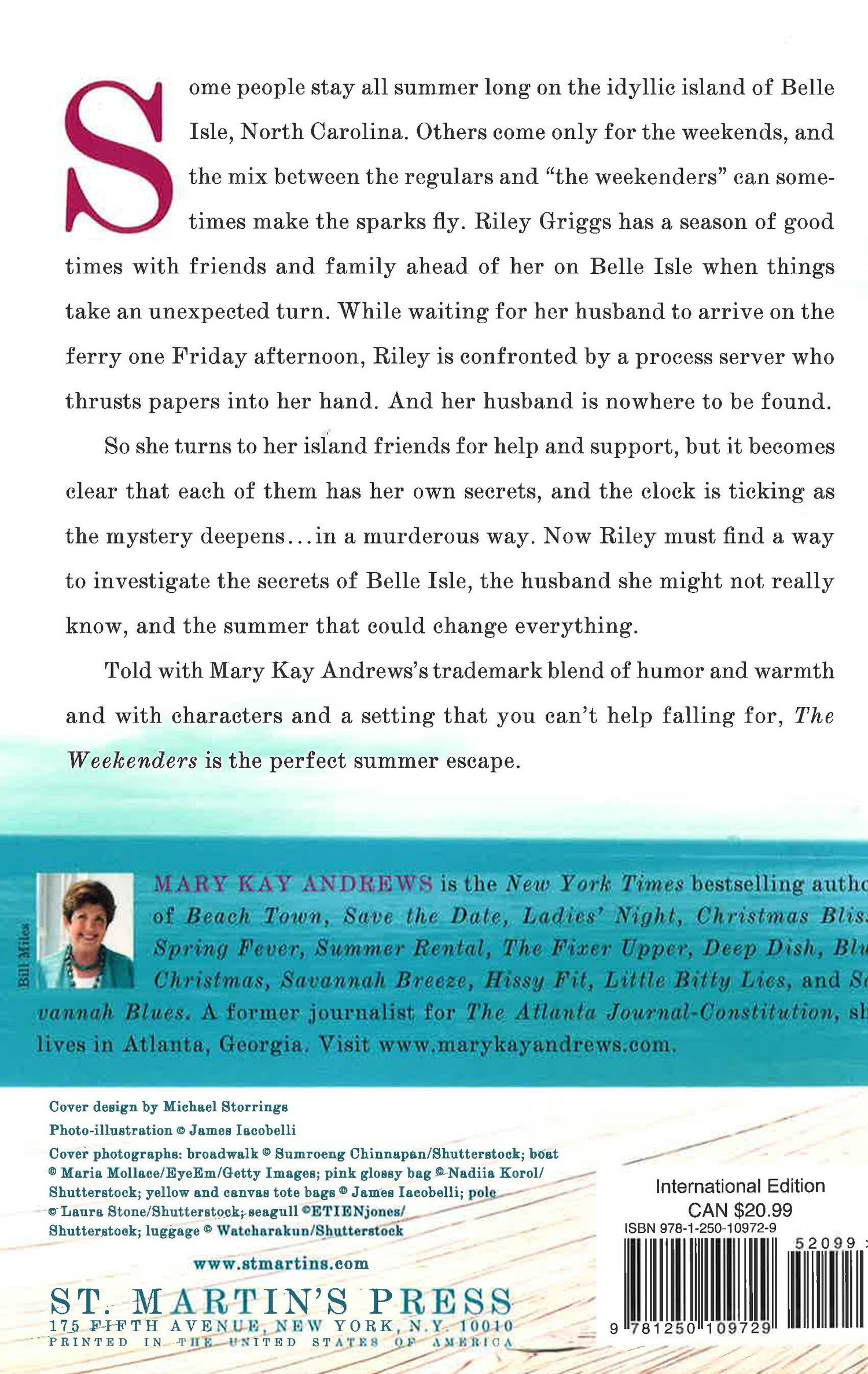"Some people stay all summer long on the idyllic island of Belle Isle, North Carolina. Some people come only for the weekends-and it's something they look forward to all week long. When Riley Griggs is waiting for her husband to arrive at the ferry one Friday afternoon, she is instead served with papers informing her that her island home is being foreclosed. To make matters worse, her husband is nowhere to be found. She turns to her island friends for help and support, but each of them has their own secrets and the clock is ticking as the mystery deepens. Cocktail parties and crab boil aside, Riley must find a way to investigate the secrets of Belle Island, the husband she might not really know, and the summer that could change everything"--
