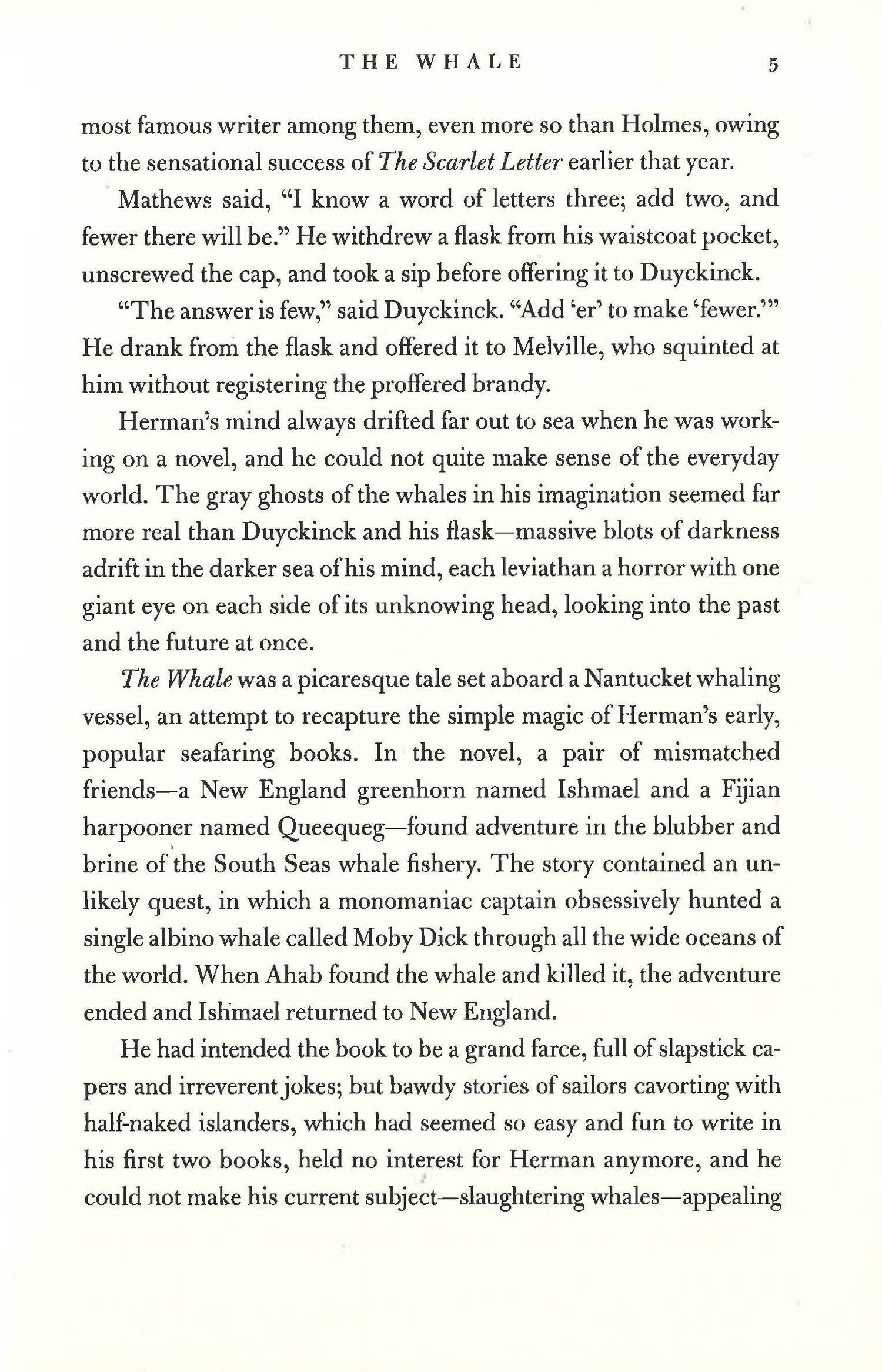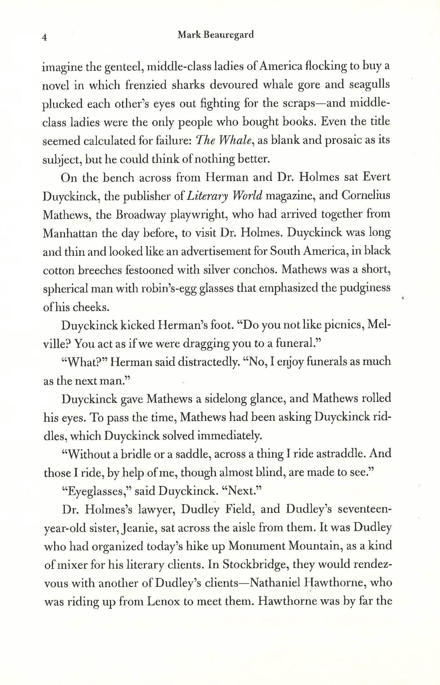 A rich and captivating novel set amid the witty, high-spirited literary society of 1850s New England, offering a new window on Herman Melville's emotionally charged relationship with Nathaniel Hawthorne and how it transformed his masterpiece, Moby-Dick In the summer of 1850, Herman Melville finds himself hounded by creditors and afraid his writing career might be coming to an end--his last three novels have been commercial failures and the critics have turned against him. In despair, Melville takes his family for a vacation to his cousin's farm in the Berkshires, where he meets Nathaniel Hawthorne at a picnic--and his life turns upside down. The Whale chronicles the fervent love affair that grows out of that serendipitous afternoon. Already in debt, Melville recklessly borrows money to purchase a local farm in order to remain near Hawthorne, his newfound muse. The two develop a deep connection marked by tensions and estrangements, and feelings both shared and suppressed. Melville dedicated Moby-Dick to Hawthorne, and Mark Beauregard's novel fills in the story behind that dedication with historical accuracy and exquisite emotional precision, reflecting his nuanced reading of the real letters and journals of Melville, Hawthorne, Oliver Wendell Holmes, and others. An exuberant tale of longing and passion, The Whale captures not only a transformative relationship--long the subject of speculation--between two of our most enduring authors, but also their exhilarating moment in history, when a community of high-spirited and ambitious writers was creating truly American literature for the first time. *This Book May HAve Remainder Mark*