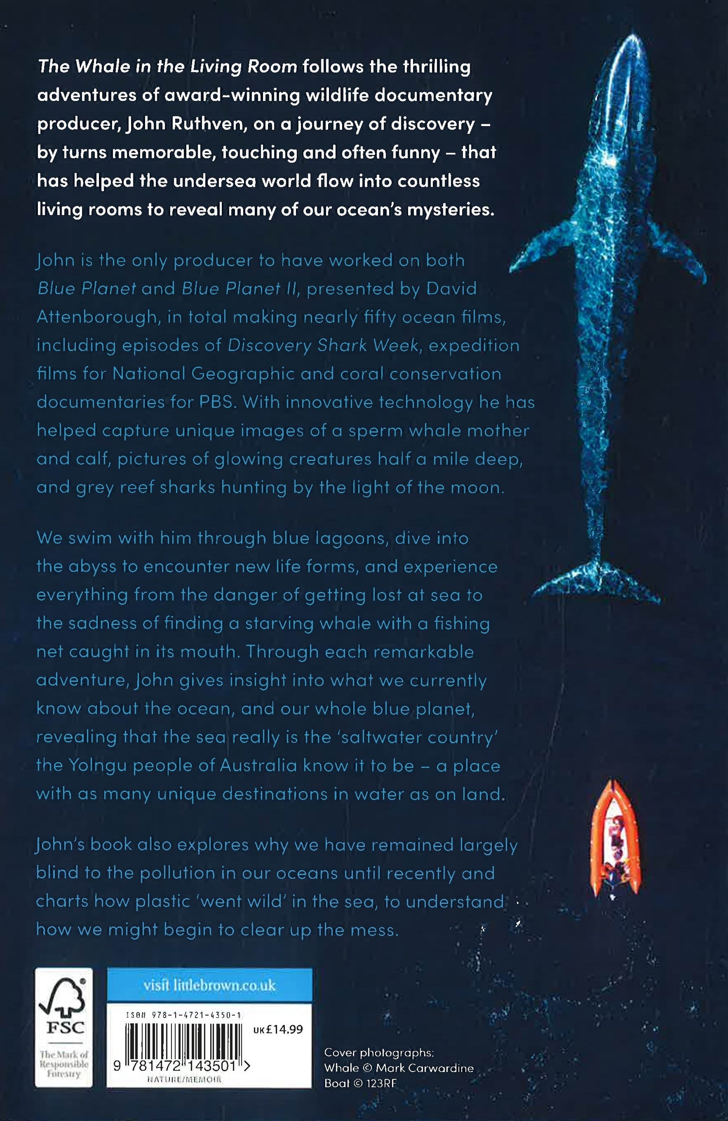 The Whale in the Living Room follows the thrilling adventures of award-winning wildlife documentary producer, John Ruthven, on a journey of discovery - by turns memorable, touching and often funny -that has helped the undersea world flow into countless living rooms to reveal many of our ocean's mysteries.